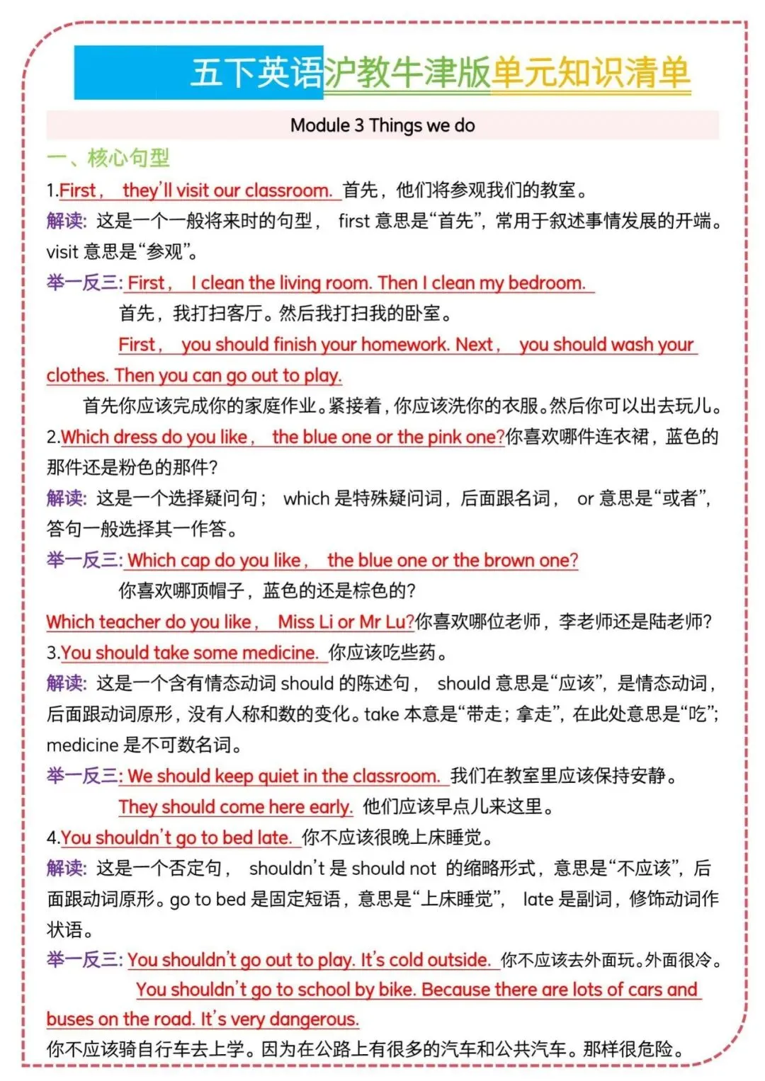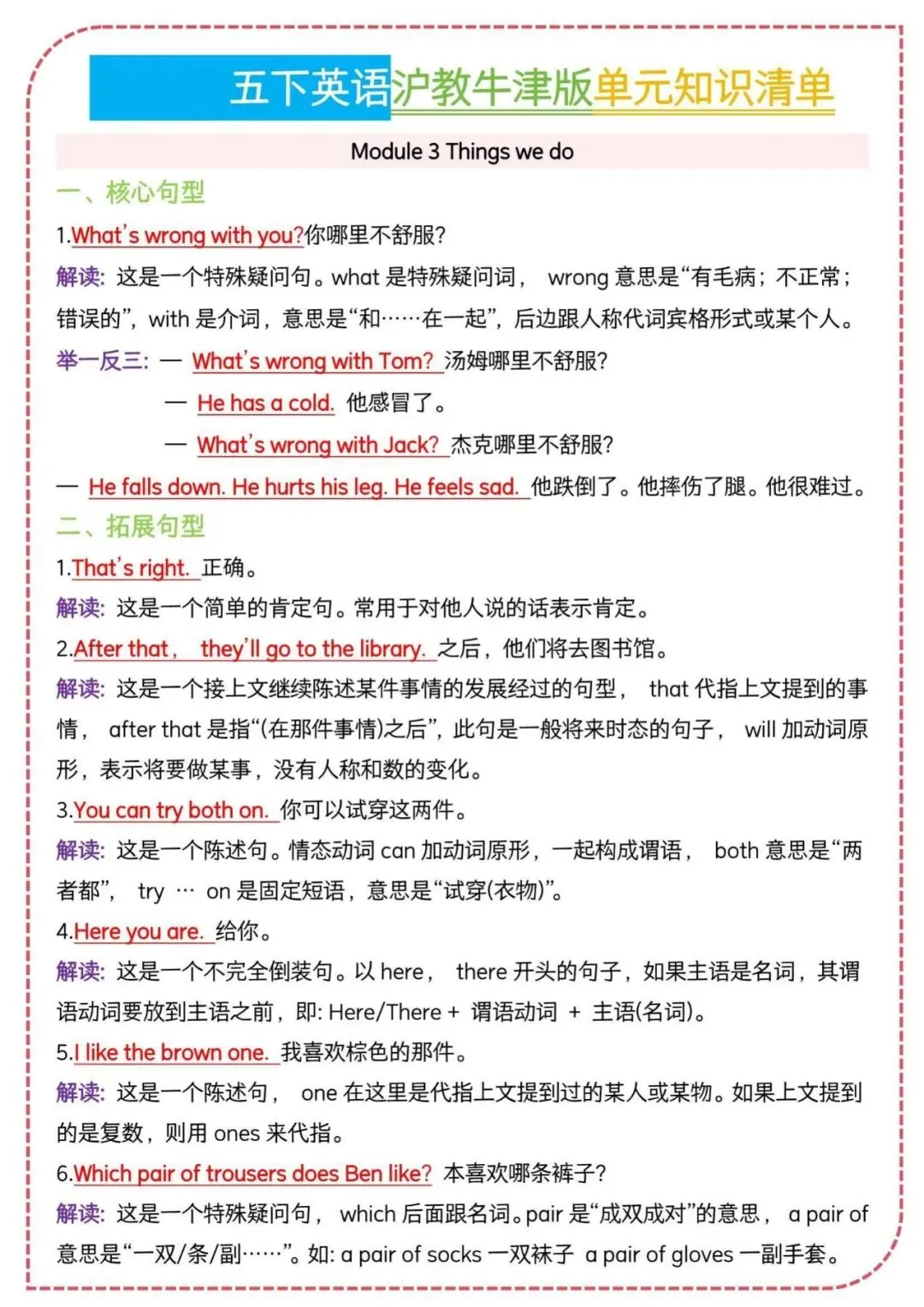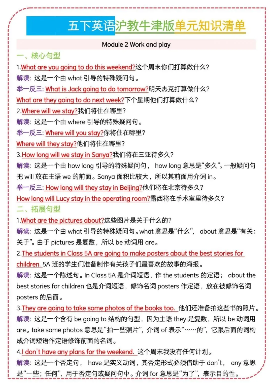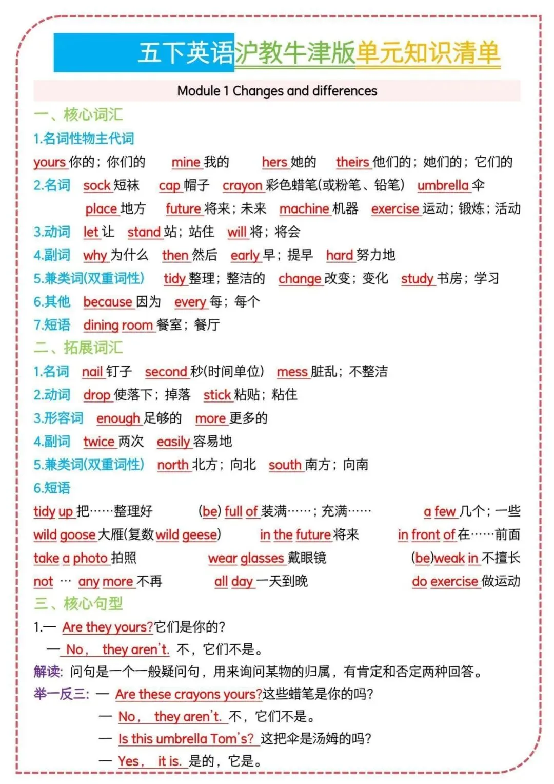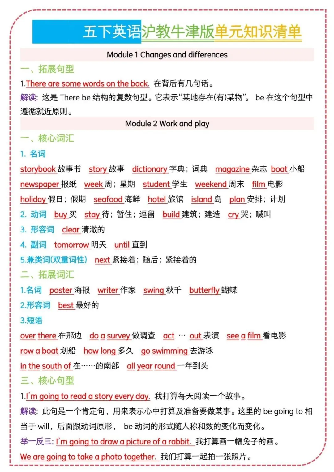 26春沪教牛津版五年级下册英语知识清单,电子版可下载可打印