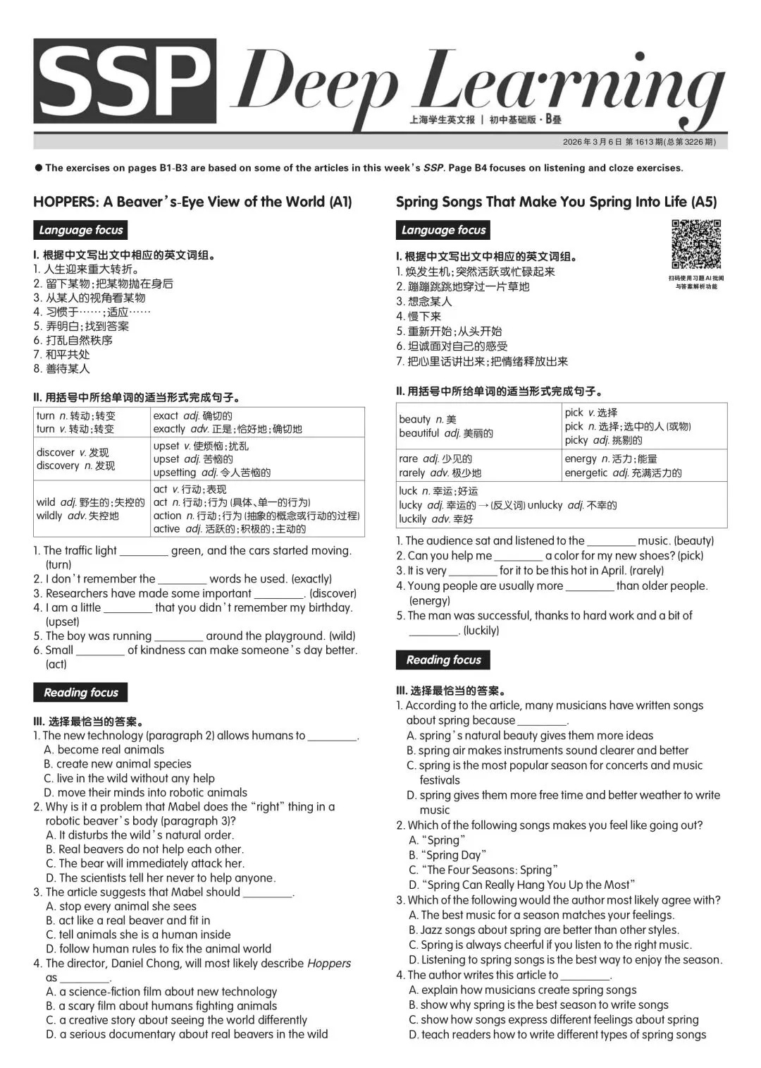 【会员资料】2026春《2026春季最新版SSP上海学生英文报》小升初T4+初中+高中 下半学期3-6月,PDF可打印