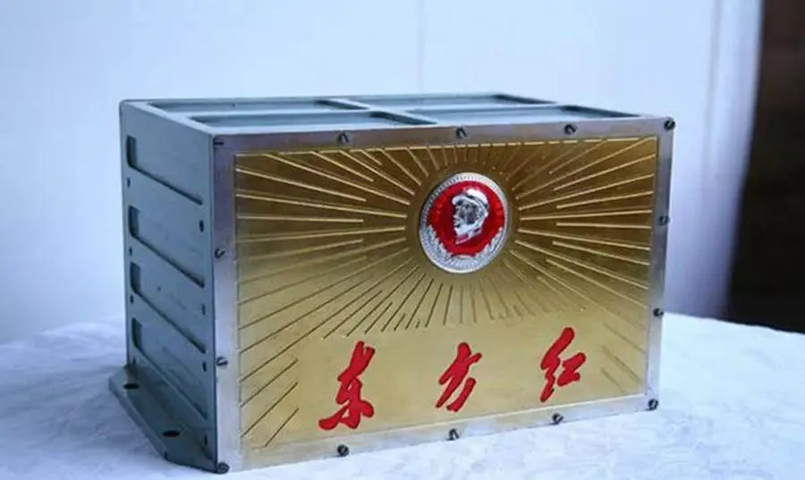 在上海国光口琴厂的技术支持下,科研人员成功地通过电子乐音合成器,将歌曲《东方红》精确地还原了出来。最终,音响设备的核心部分成型,它是一个看似不起眼的小盒子,正面镶嵌着毛泽东的头像,下方是东方红三个红字,便是这台不起眼的装置将悠扬的乐曲传送到了太空。这就是东方红一号卫星上的音乐装置。
