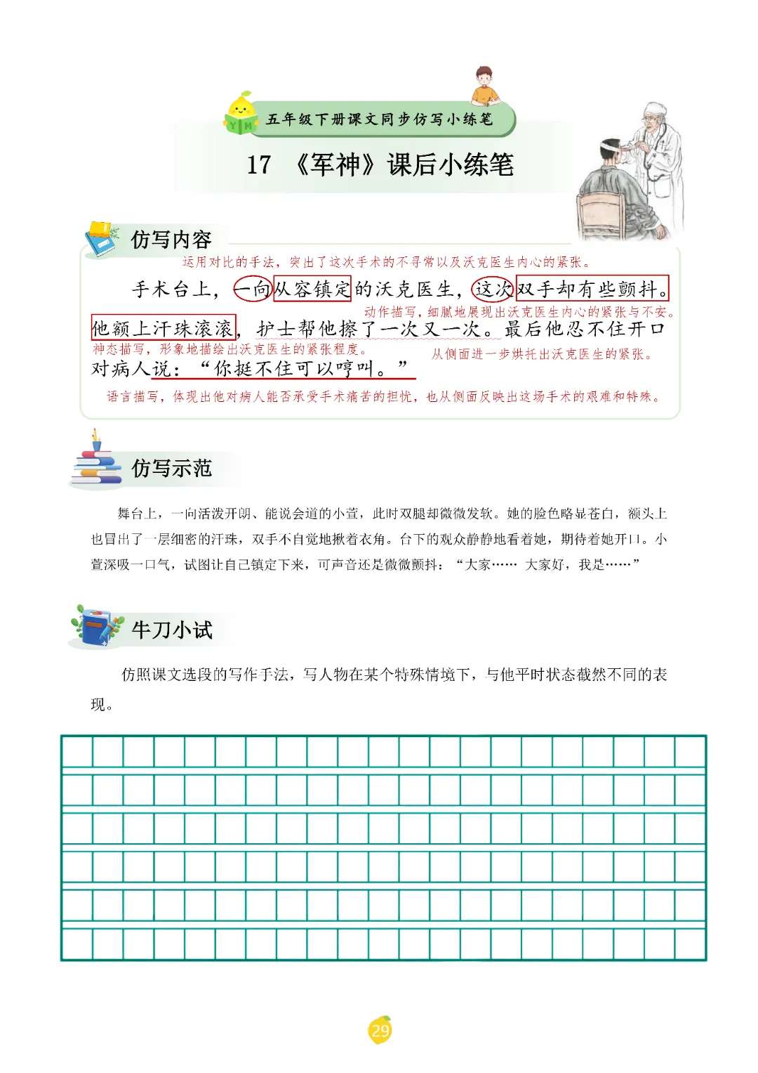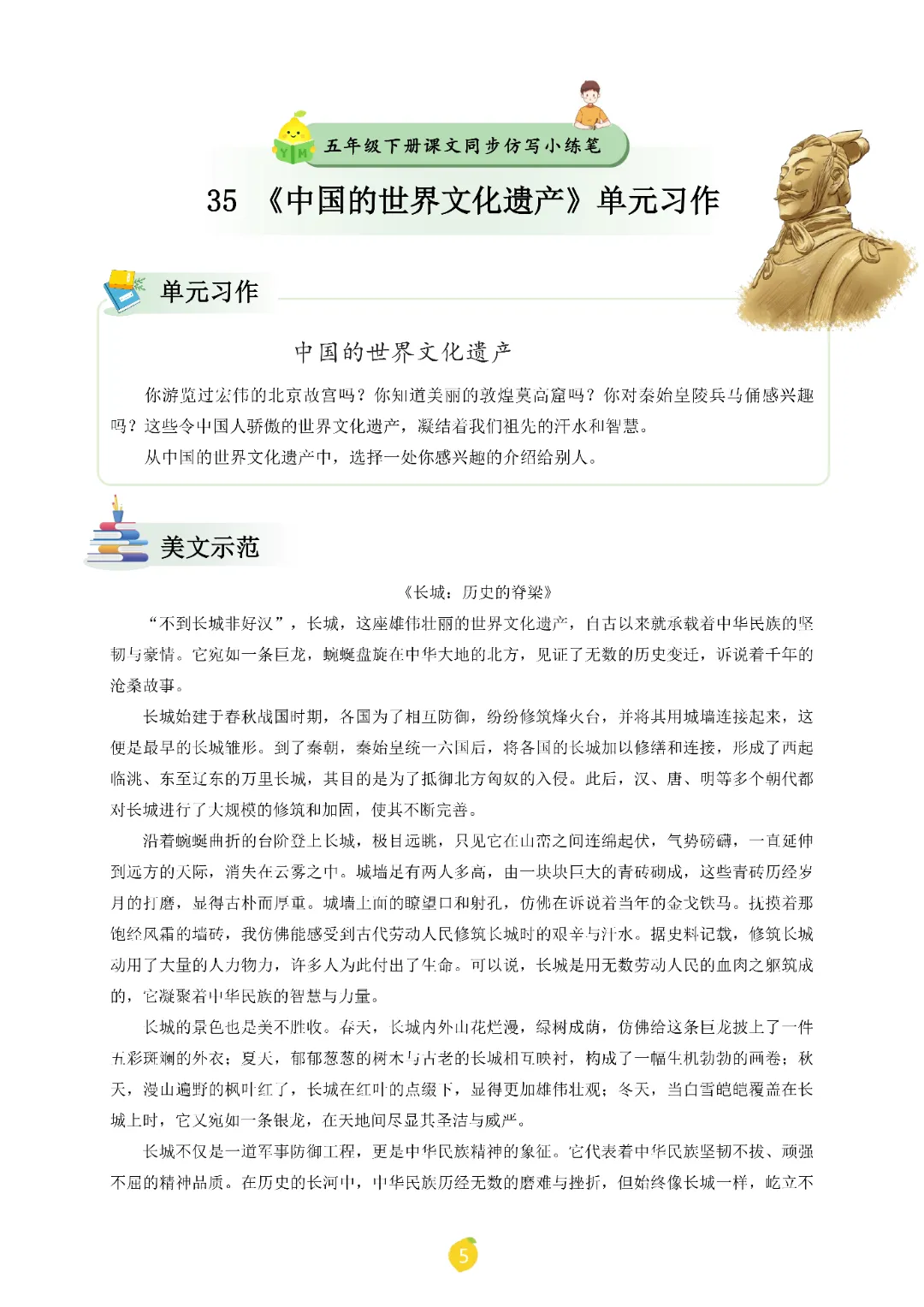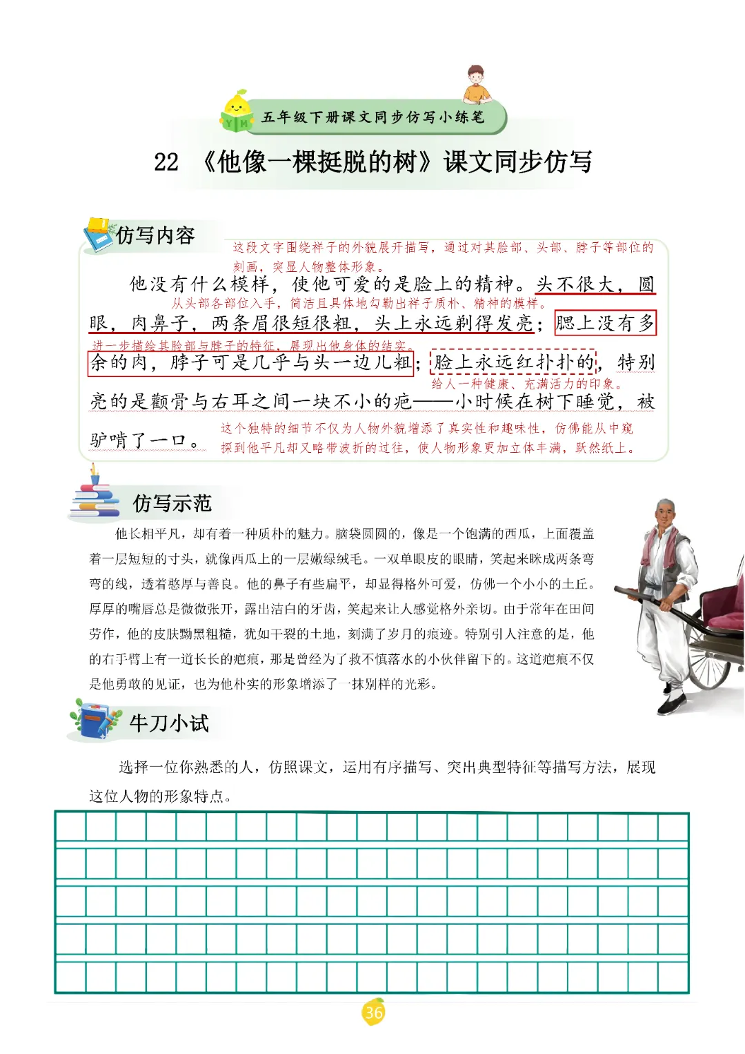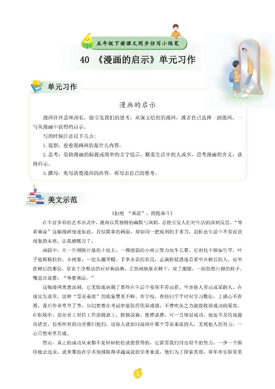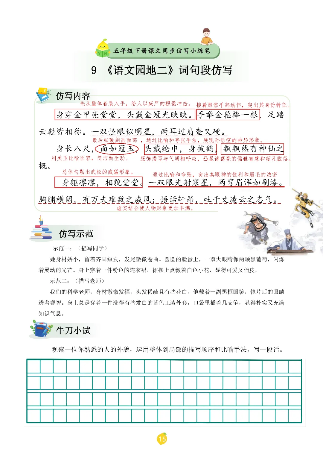 2026春人教统编版五年级下册语文《课文仿写小练笔》,含详细答案共68页,电子版可打印可下载。围绕五年级下册考试核心,展开练习,帮助孩子深入理解题型,夯实学科基础,培养孩子逻辑思维,提升知识综合运用能力与应试技巧,助力升学能力培养,从从容容游刃有余的度过春季学期。欢迎转发分享到班级群, 需要的家长们和老师们抓紧领取一份吧。