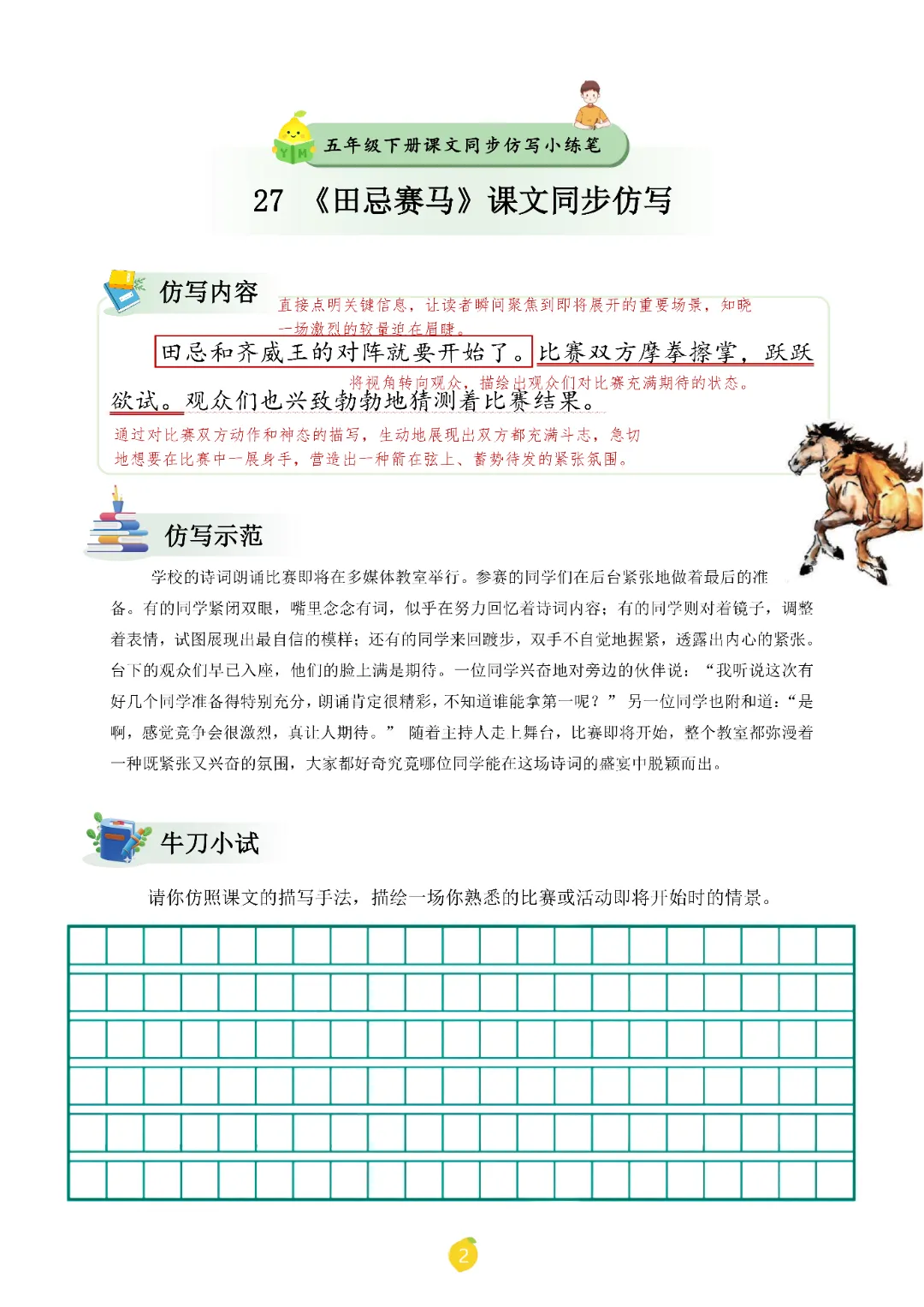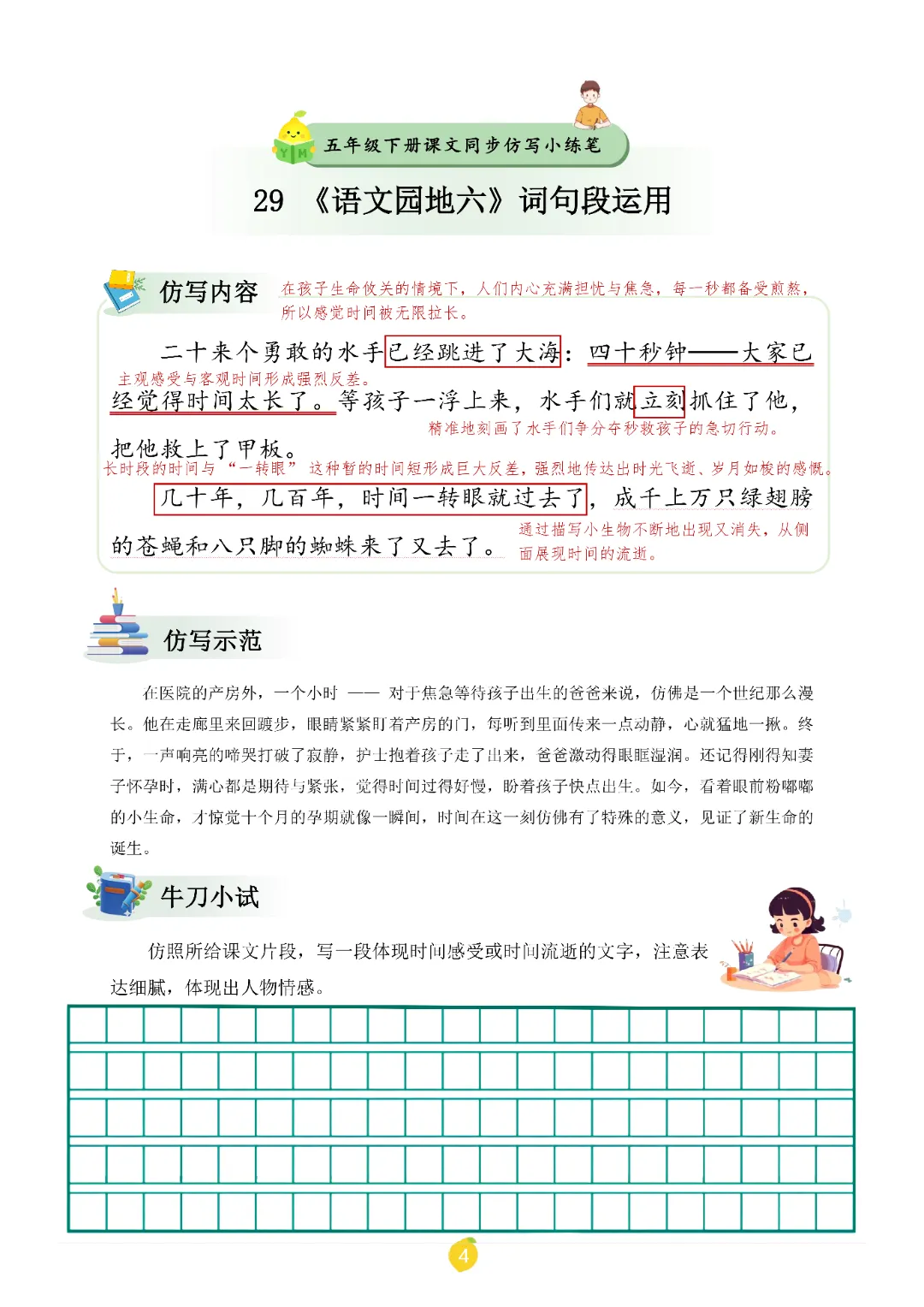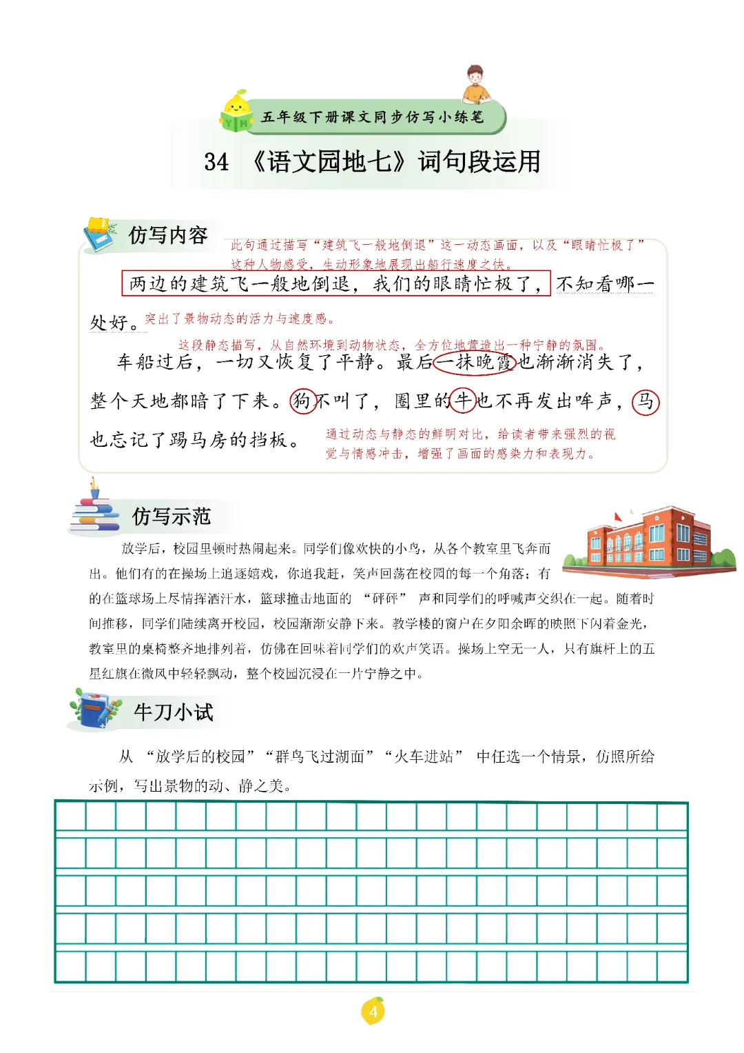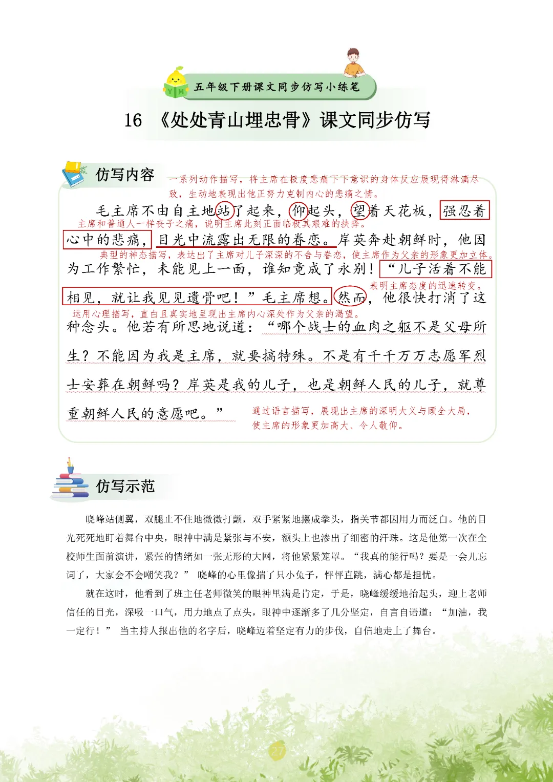 2026春人教统编版五年级下册语文《课文仿写小练笔》,电子版可打印