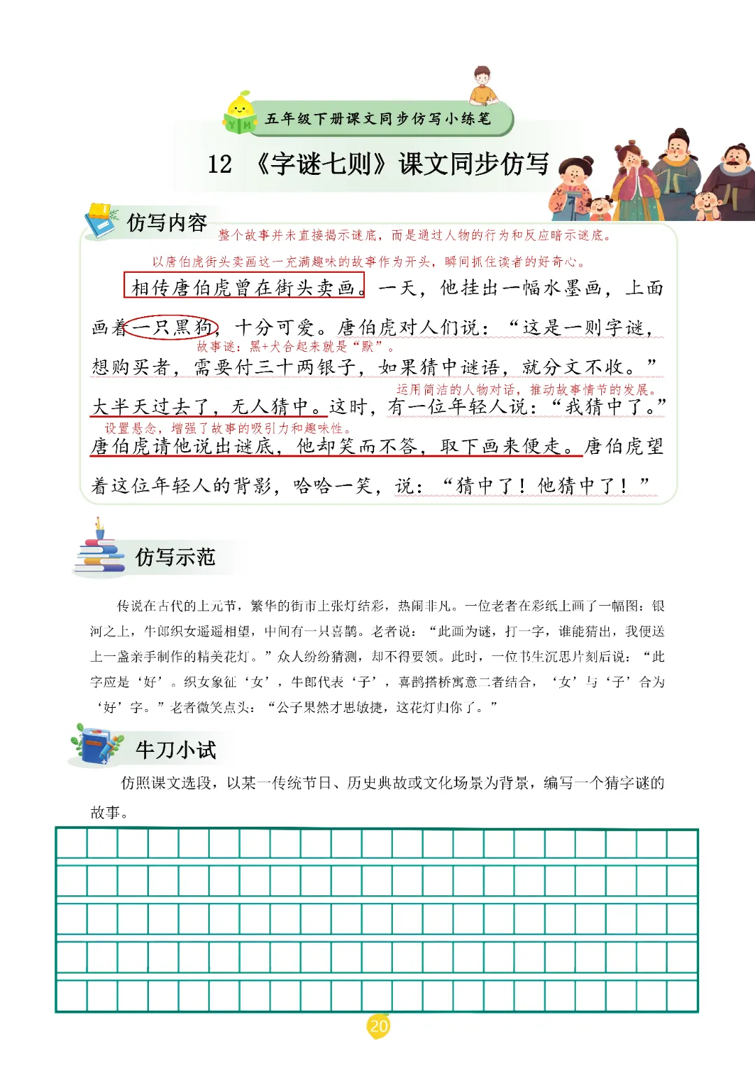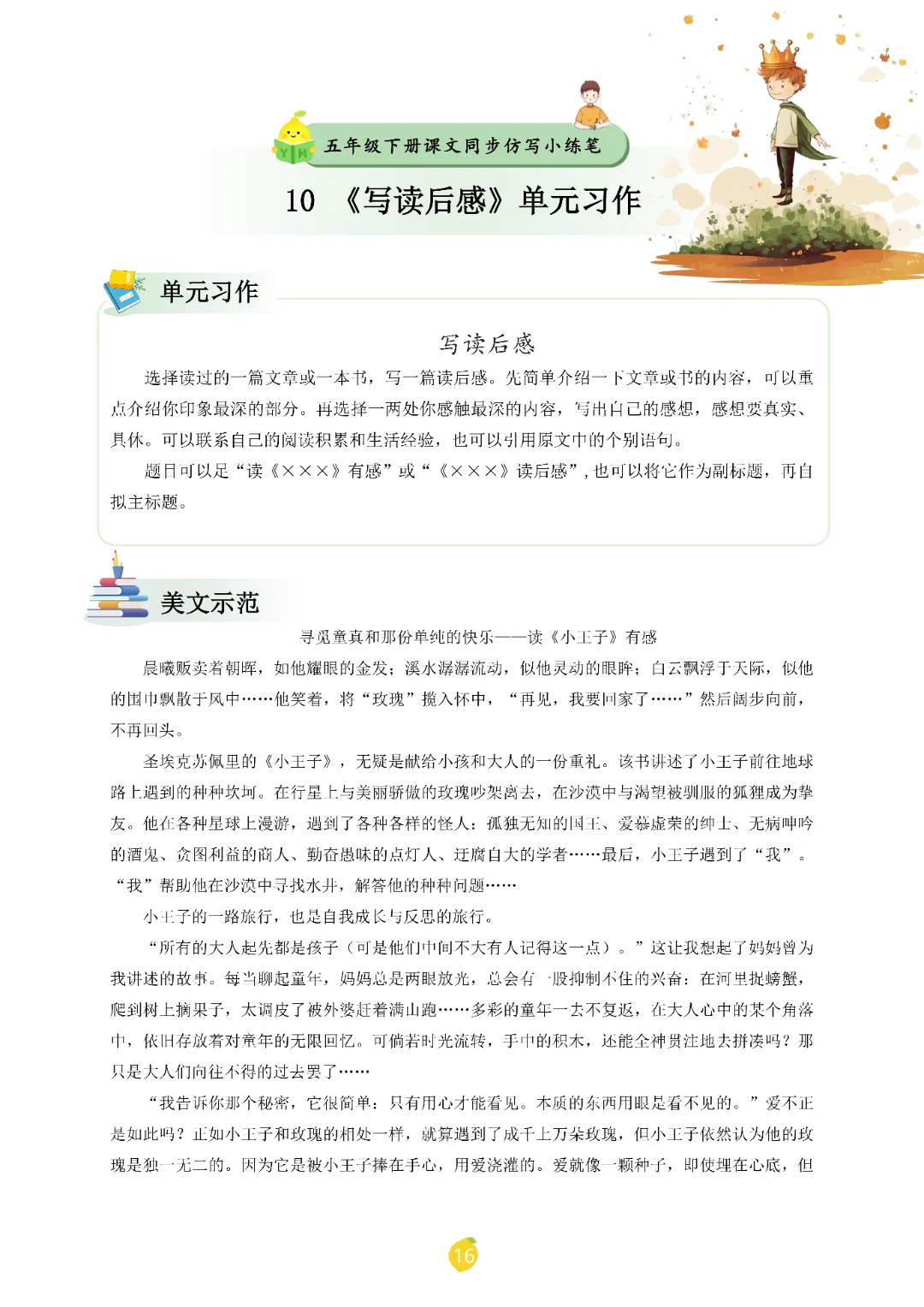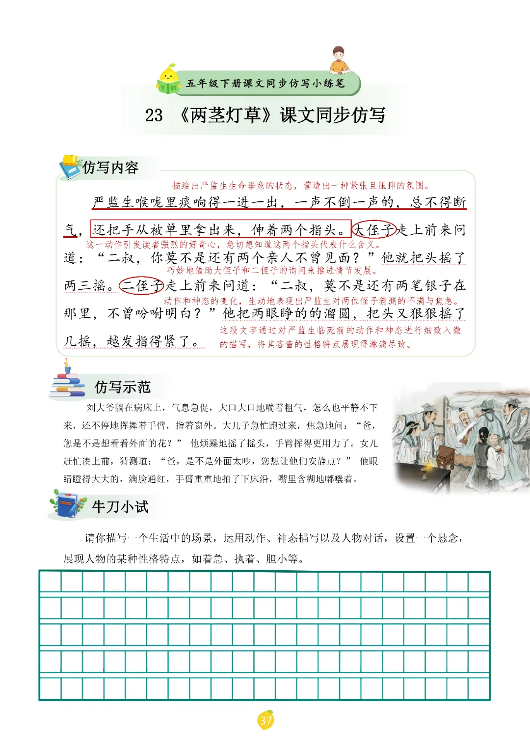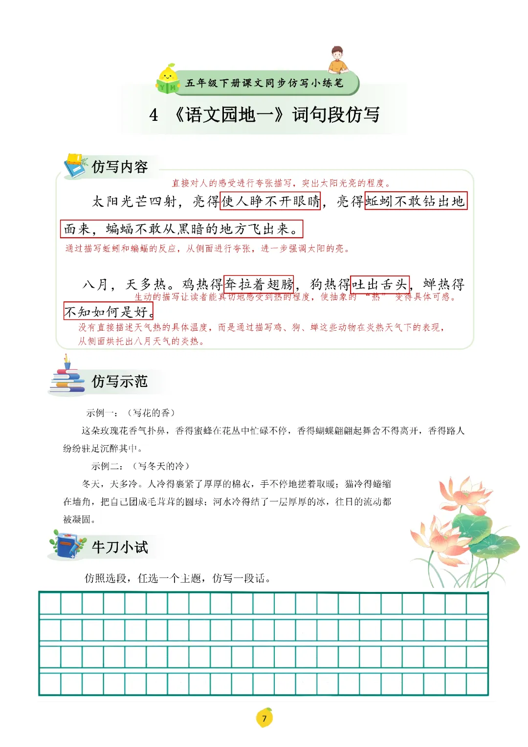 2026春人教统编版五年级下册语文《课文仿写小练笔》,电子版可打印