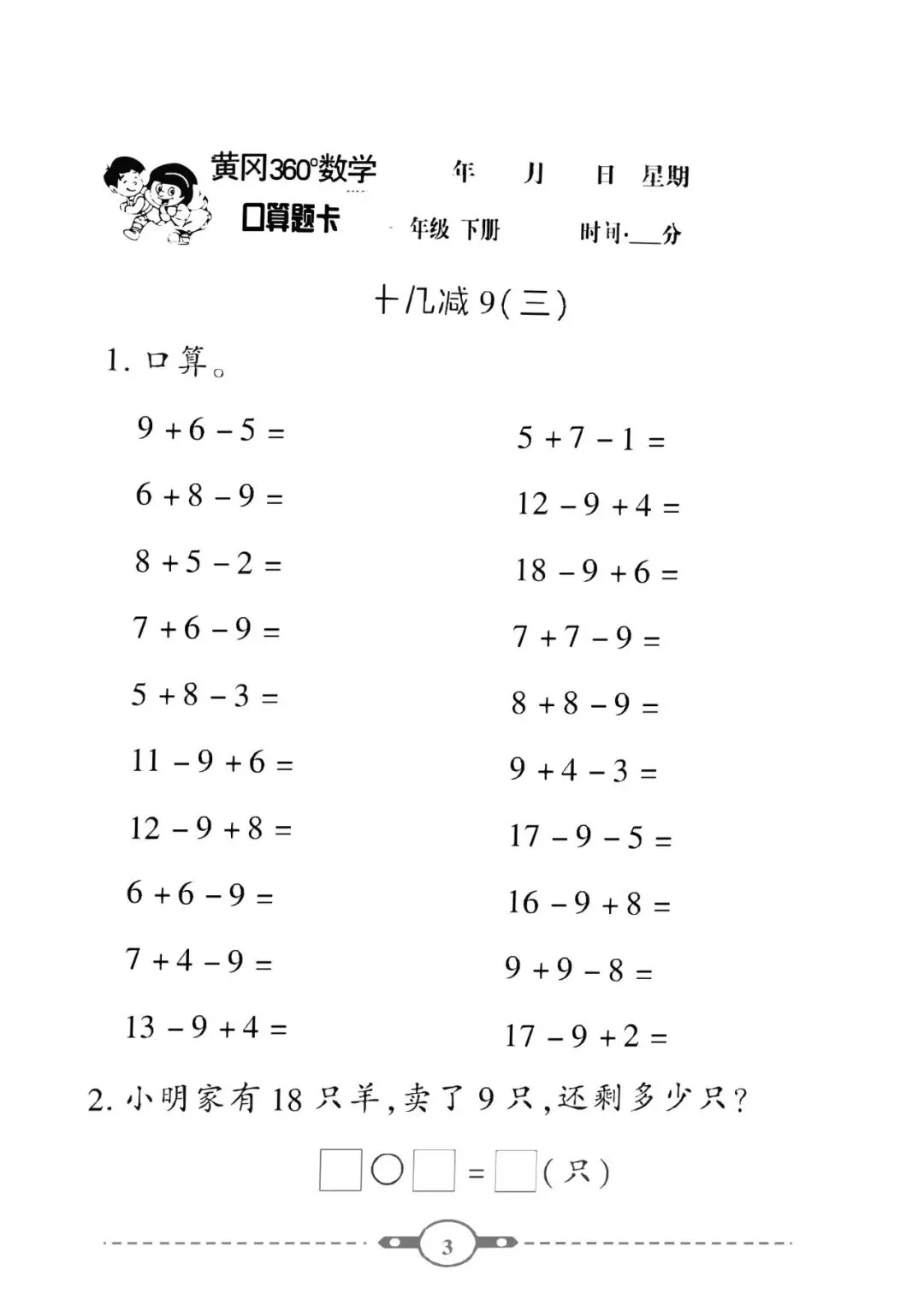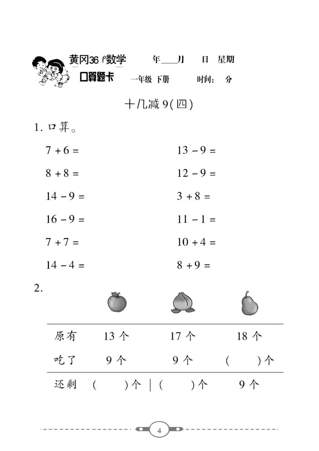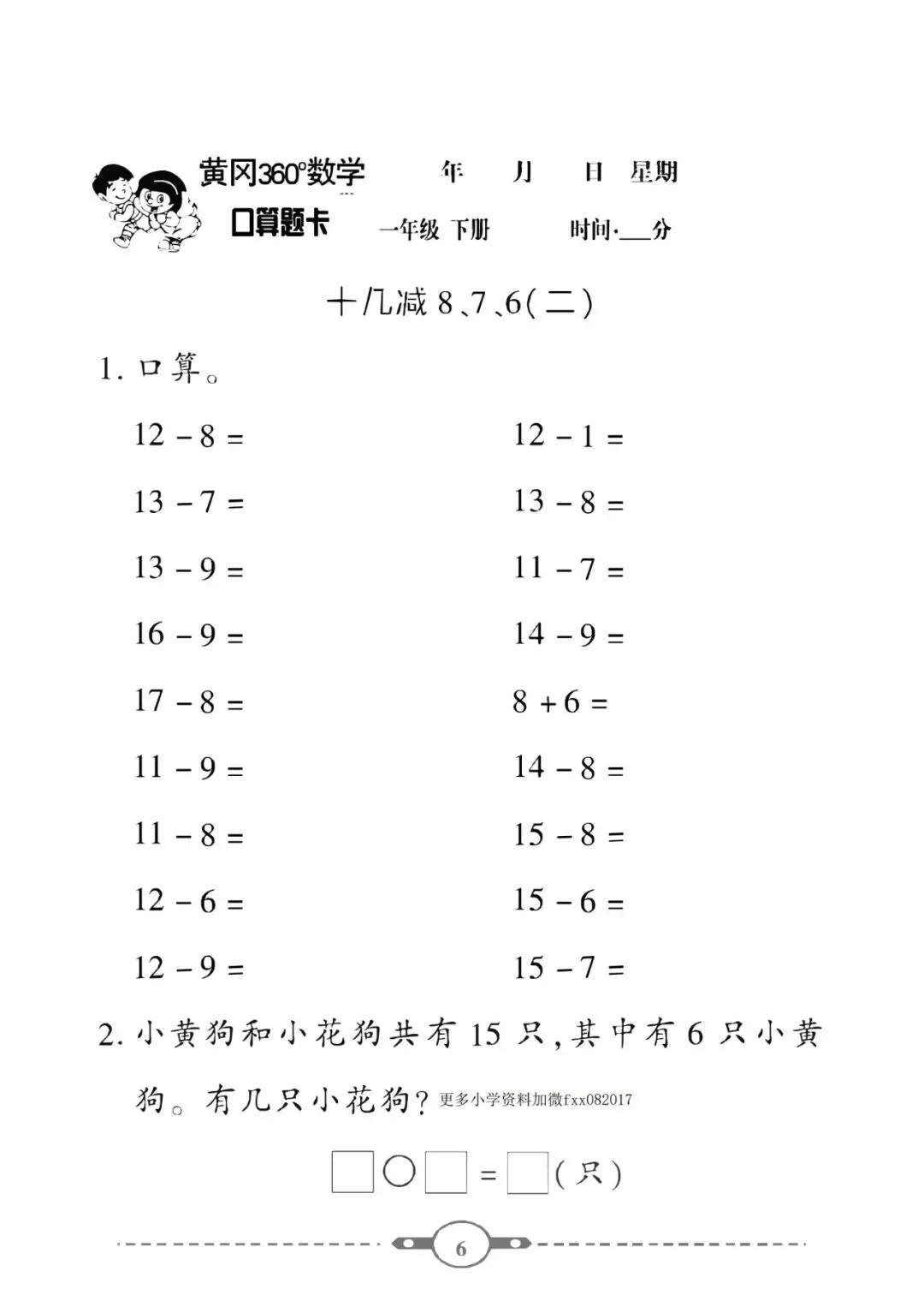 《口算题卡》一年级下册数学北师版