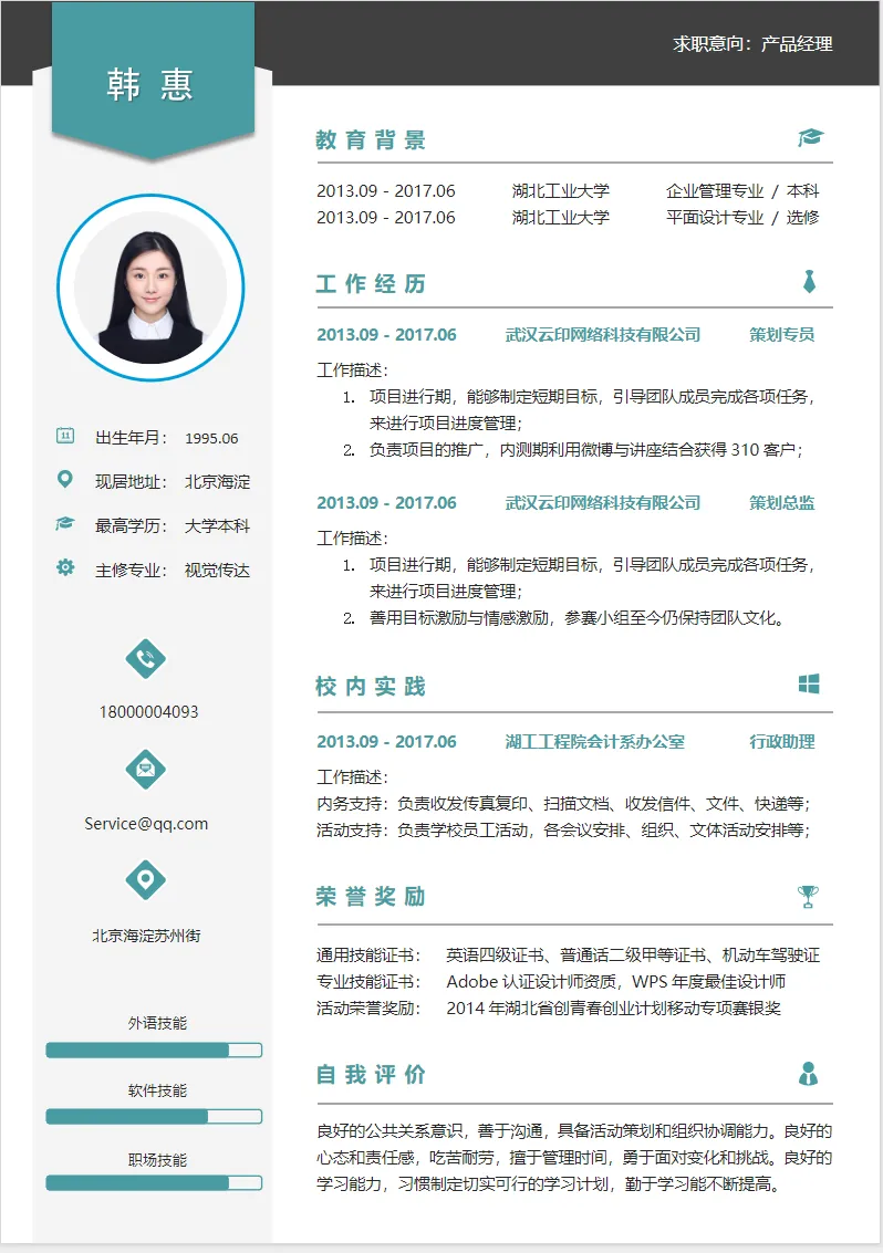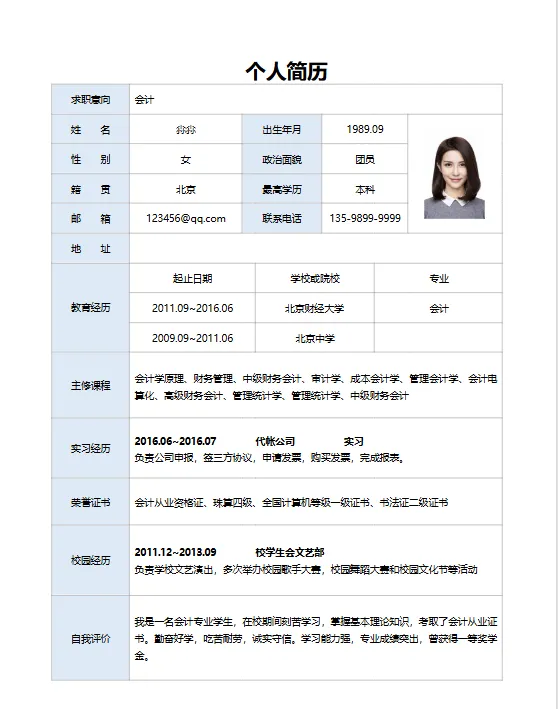 个人简历表word免费下载(可编辑)电子版