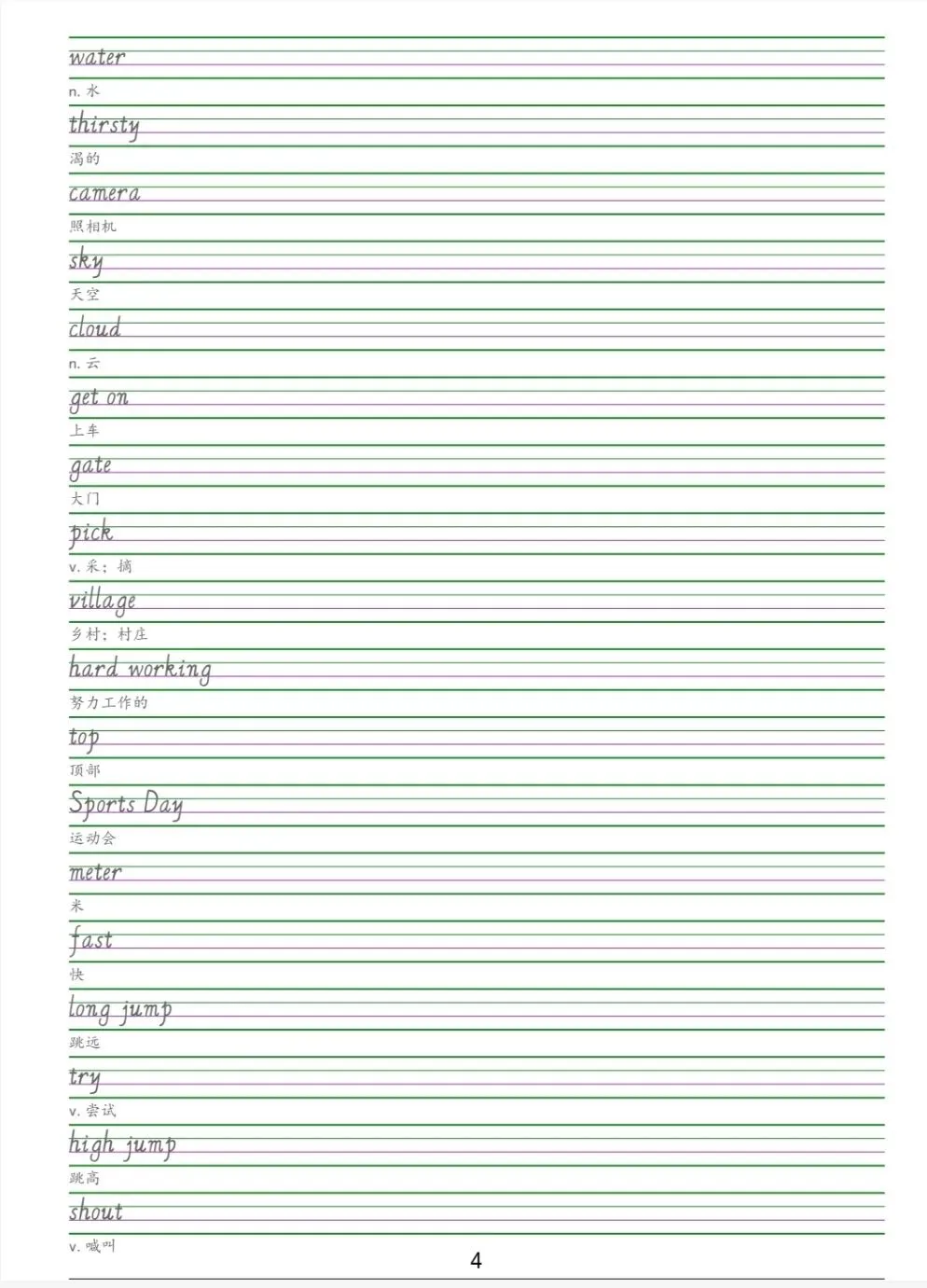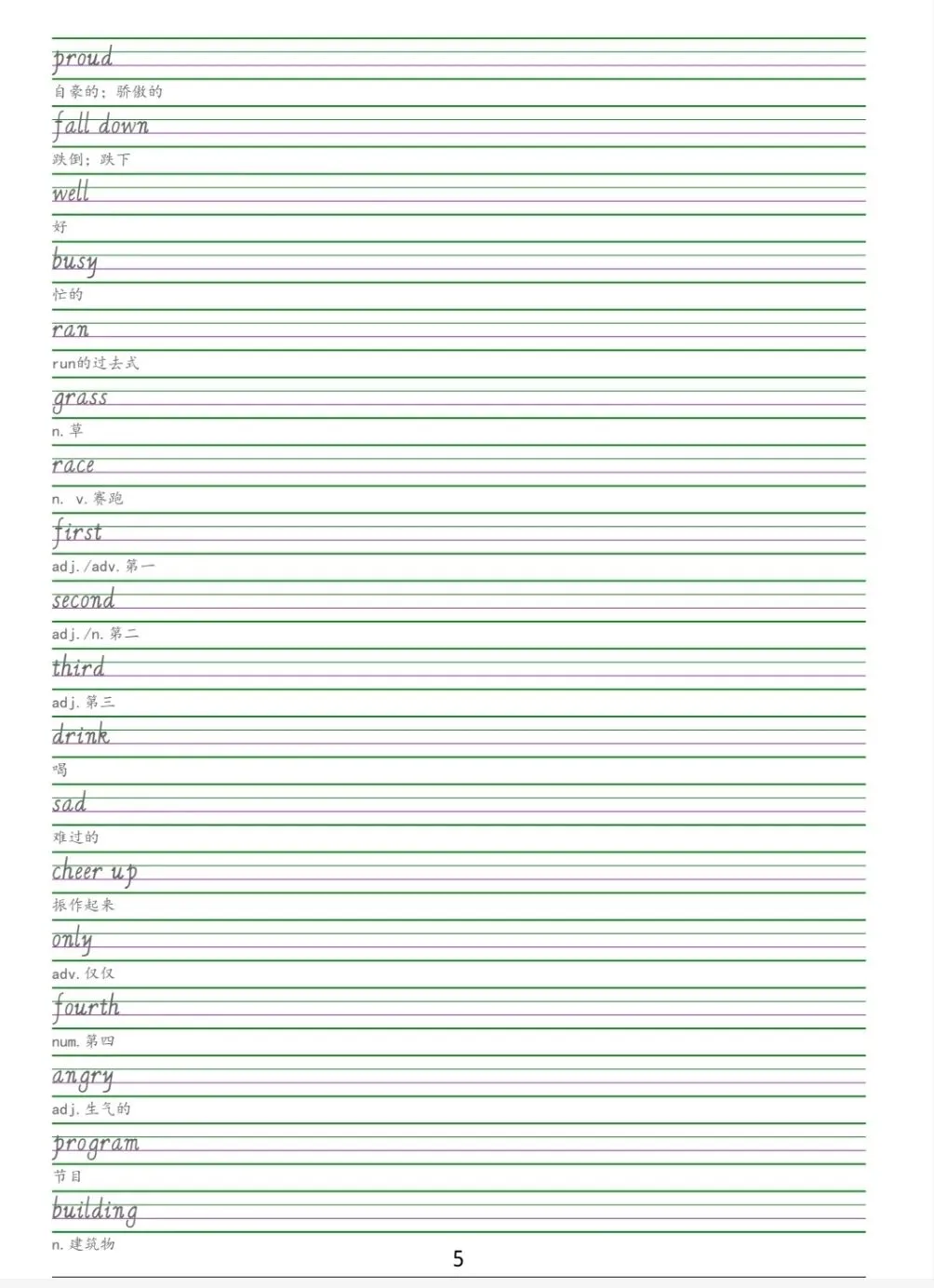 闽教版 五年级下册英语《单词字帖》电子版pdf可下载打印
