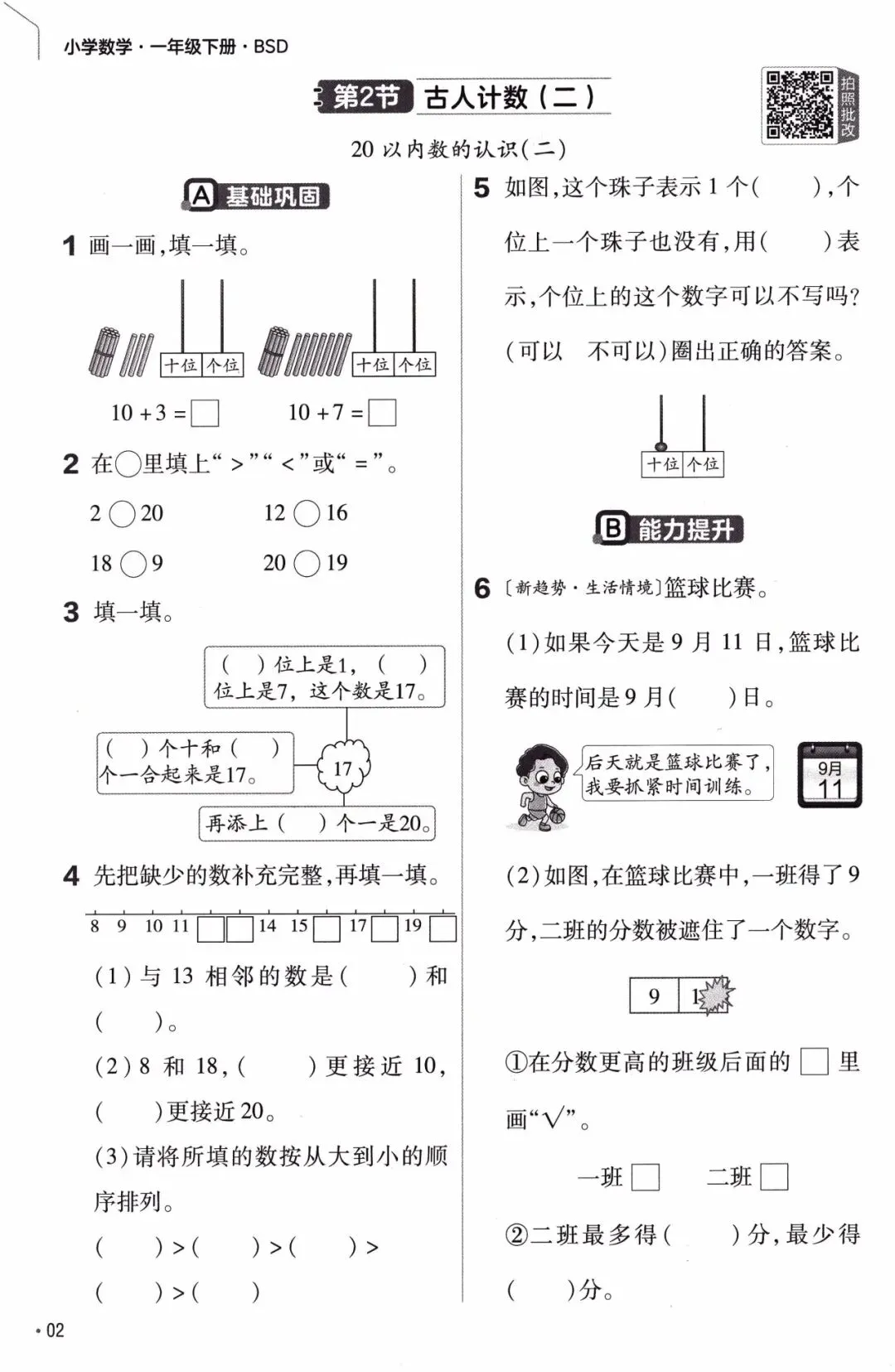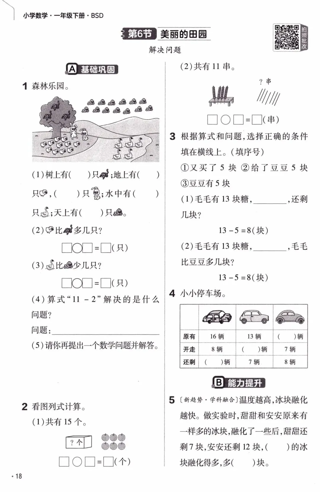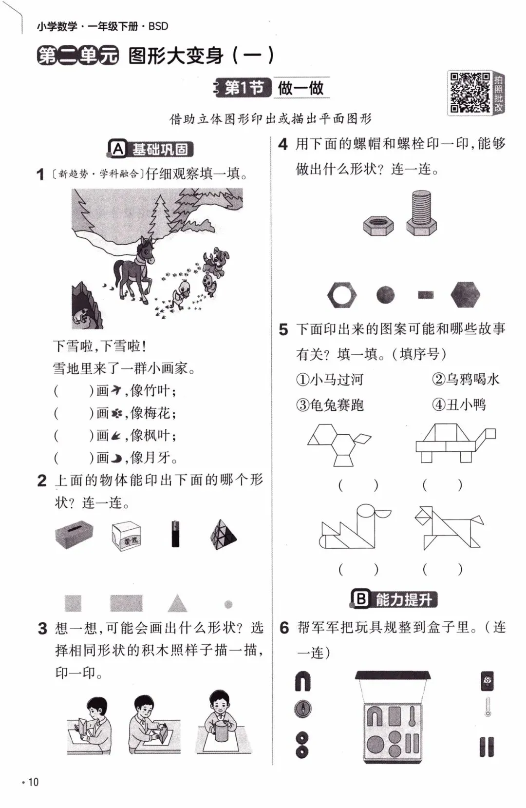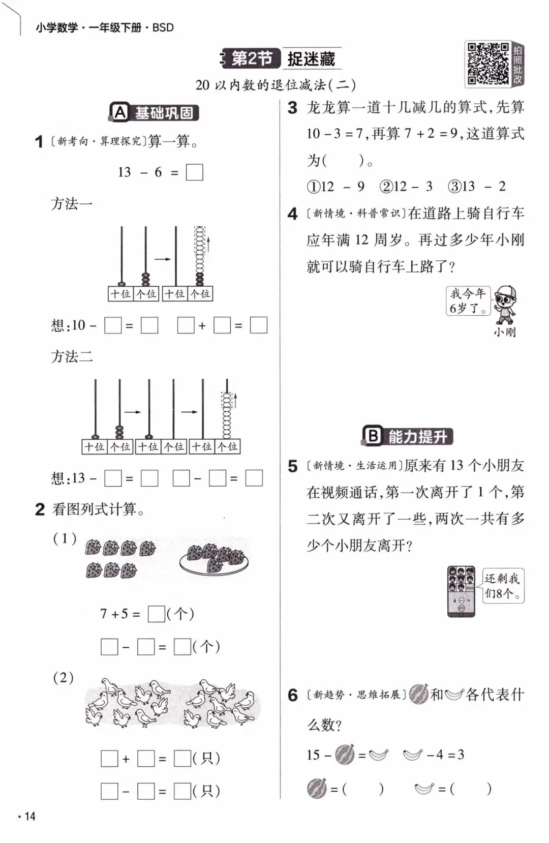 2026年春北师大版新小学一年级下册数学《同步课本一课一练》(基础练习含答案)-完整电子版可打印