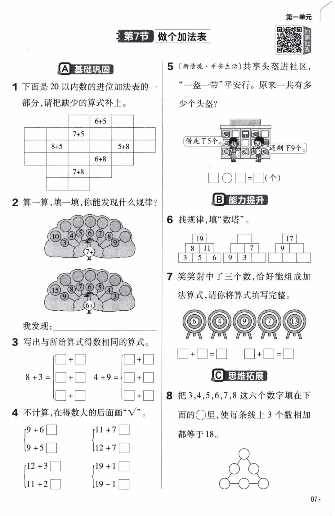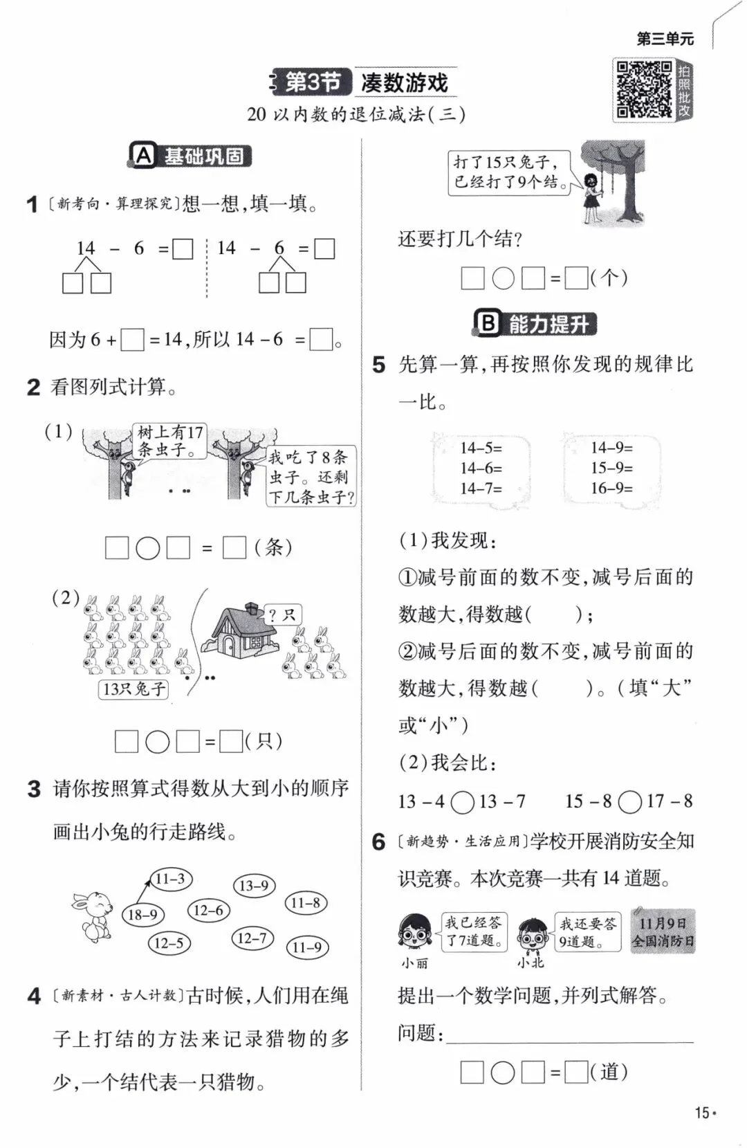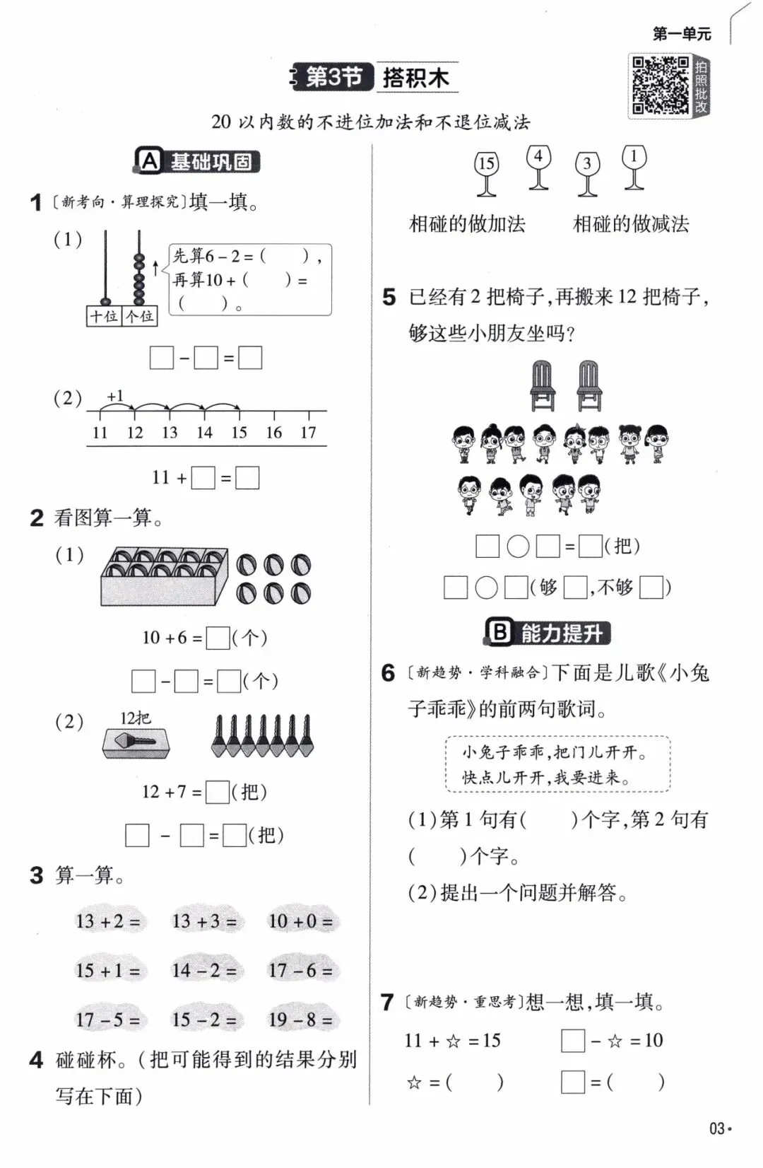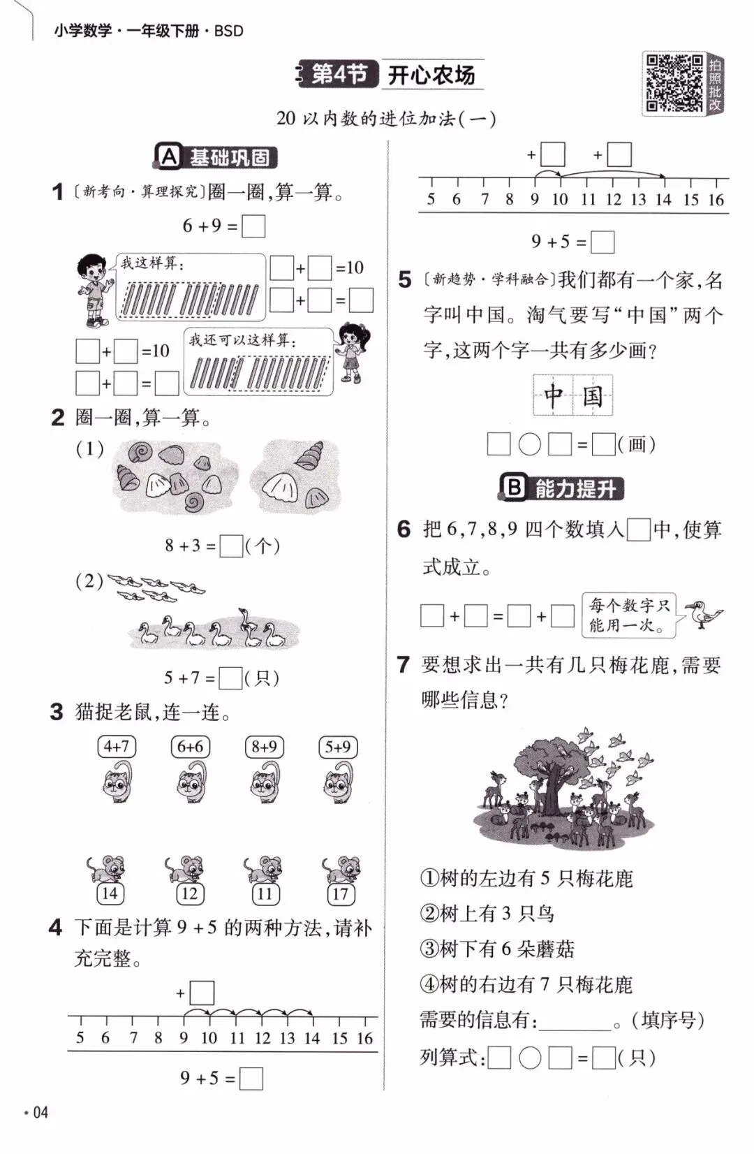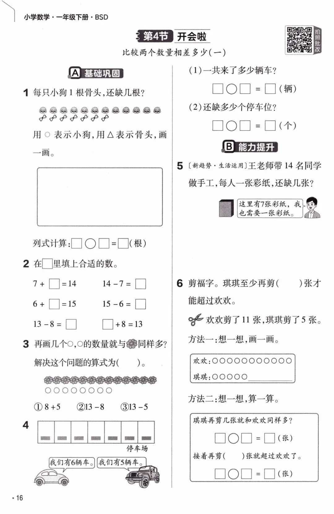 2026年春北师大版新小学一年级下册数学《同步课本一课一练》(基础练习含答案)-完整电子版可打印