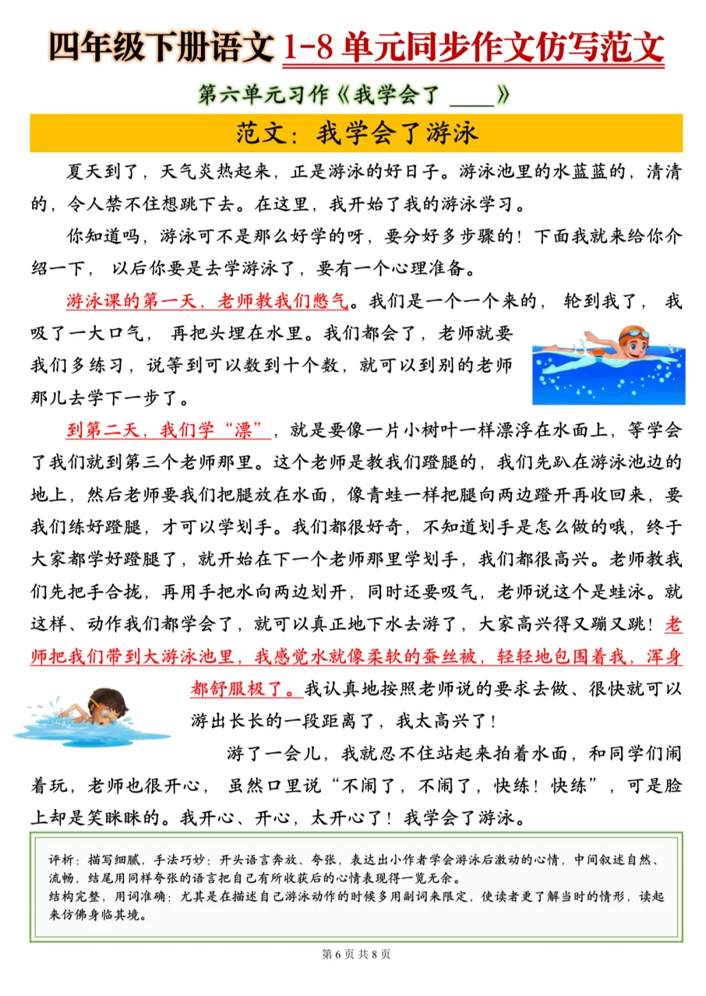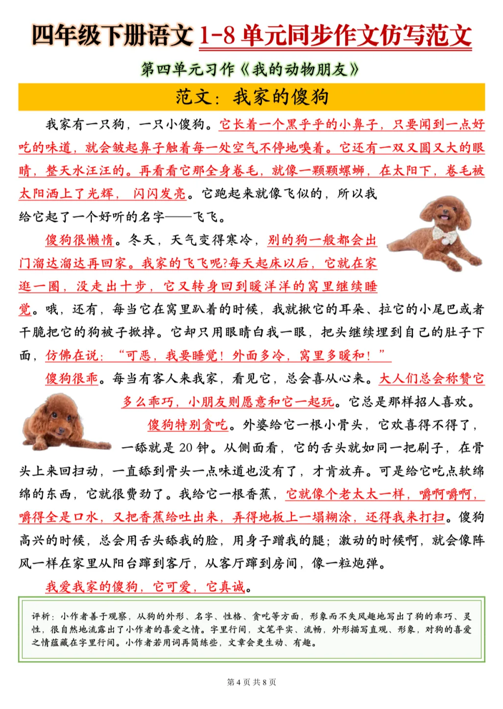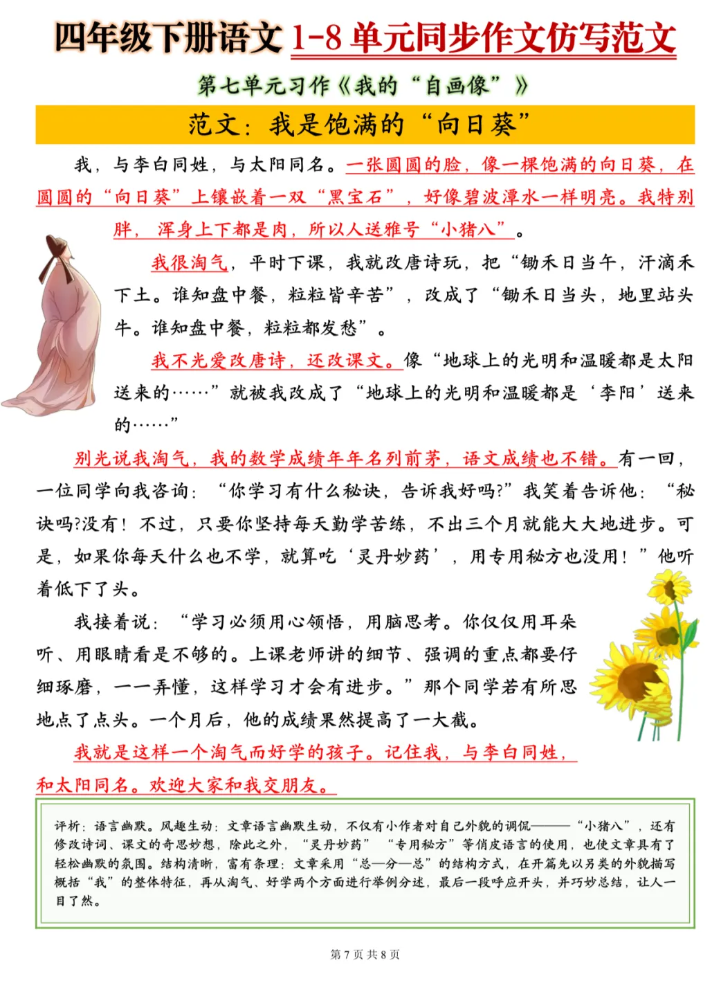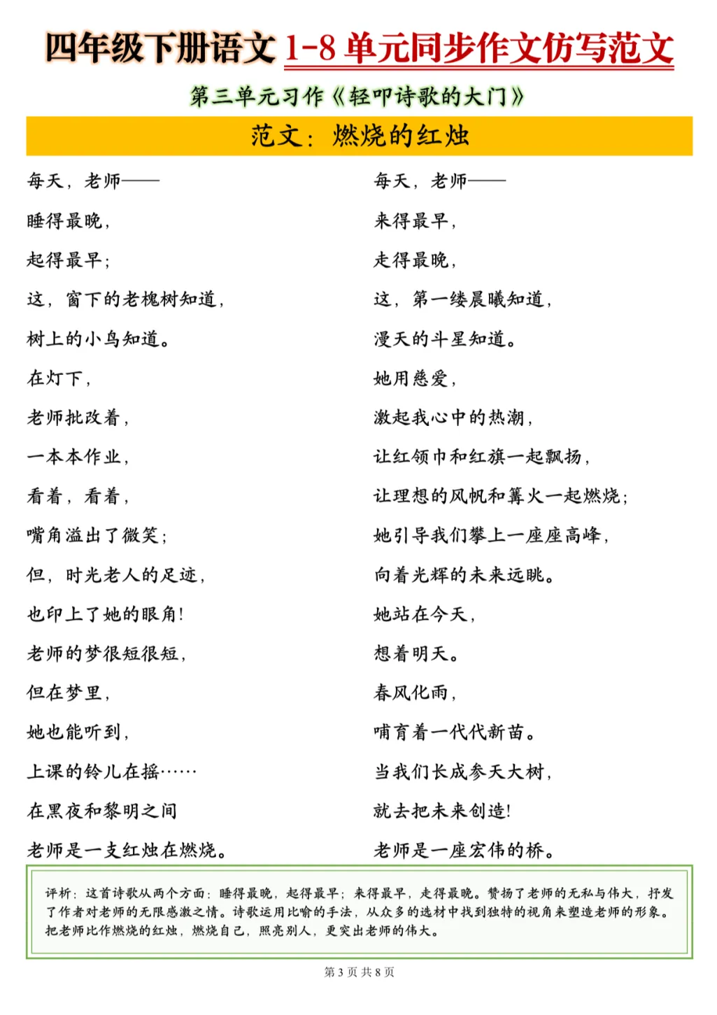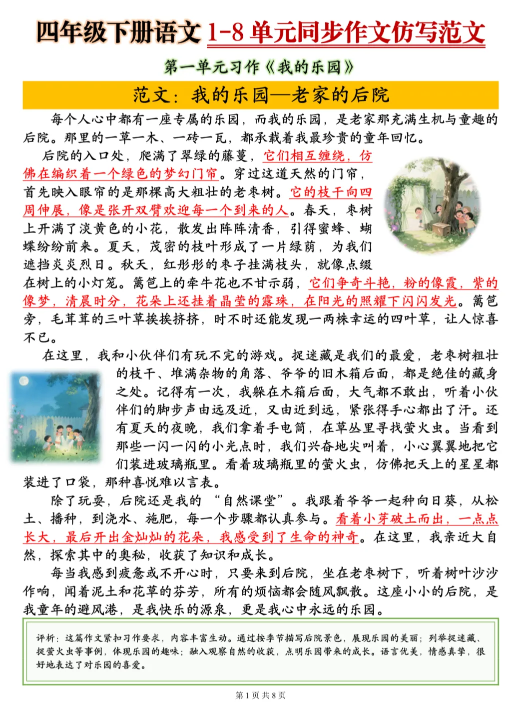 26春季最新版四年级下册语文【1-8单元同步作文仿写范文】电子版可打印 大家好!我是幼小语数衔接资料库~ 今天为大家分享四年级下册语文【1-8单元同步作文仿写范文】,新学期别愁作文,跟着范文练起来💪 (温馨提示:文末可打印完整电子版)