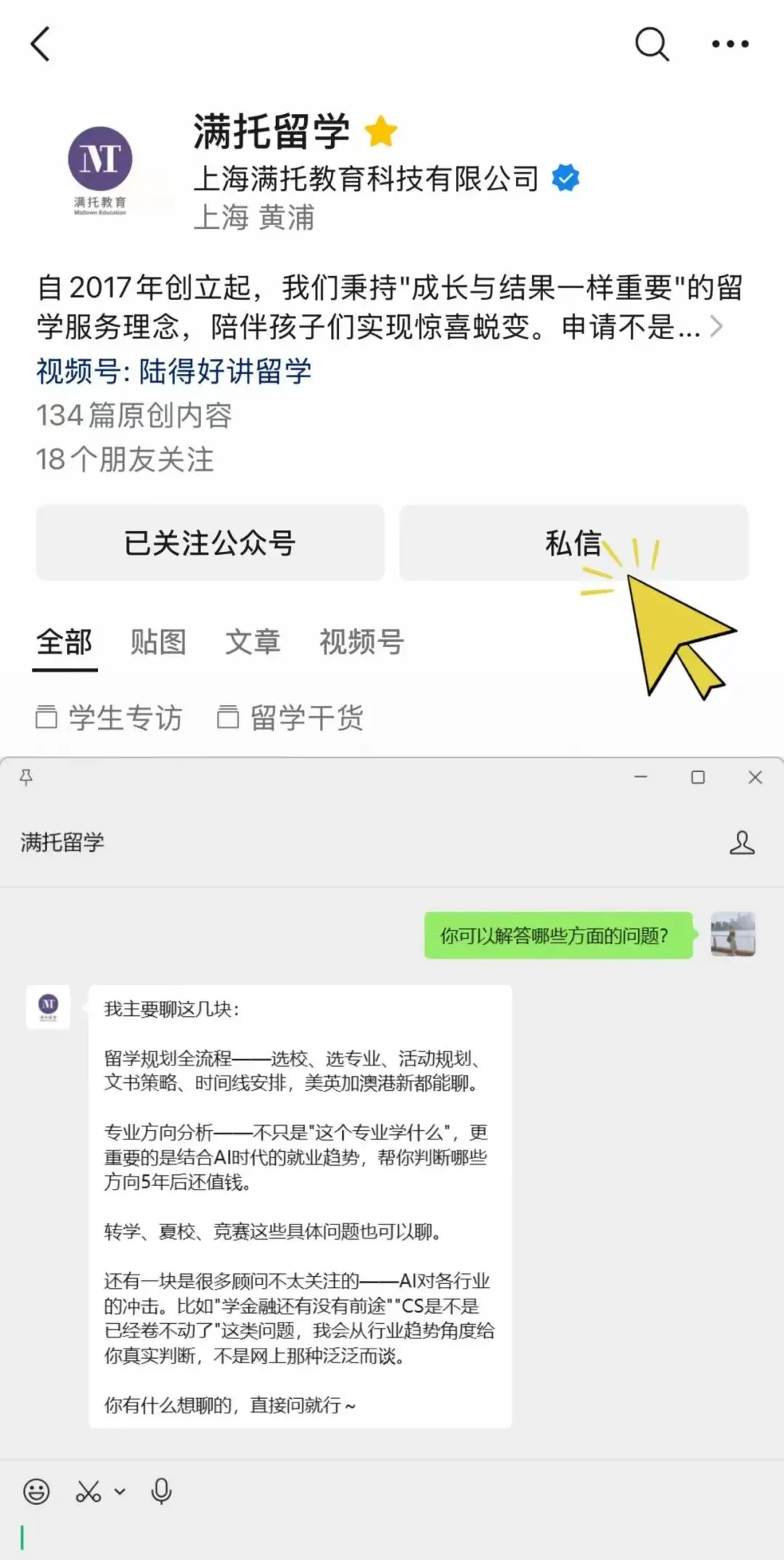 如果你有任何专业上,选校上的问题,都可以直接在我们的公众号对话框进行留言,我们的虚拟顾问会24小时在线帮你解答!