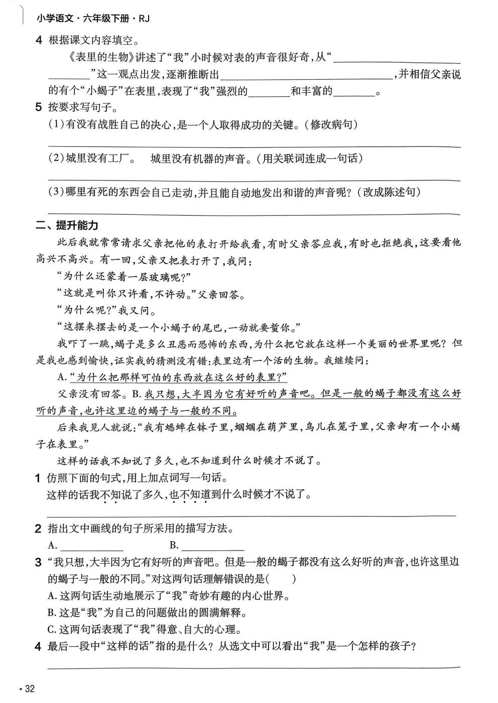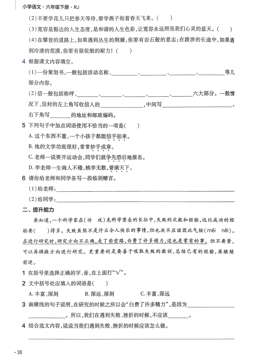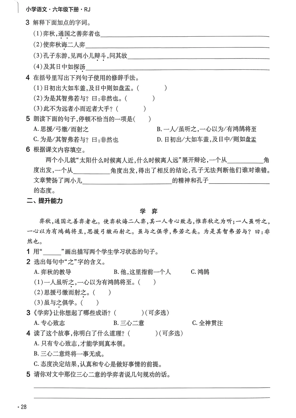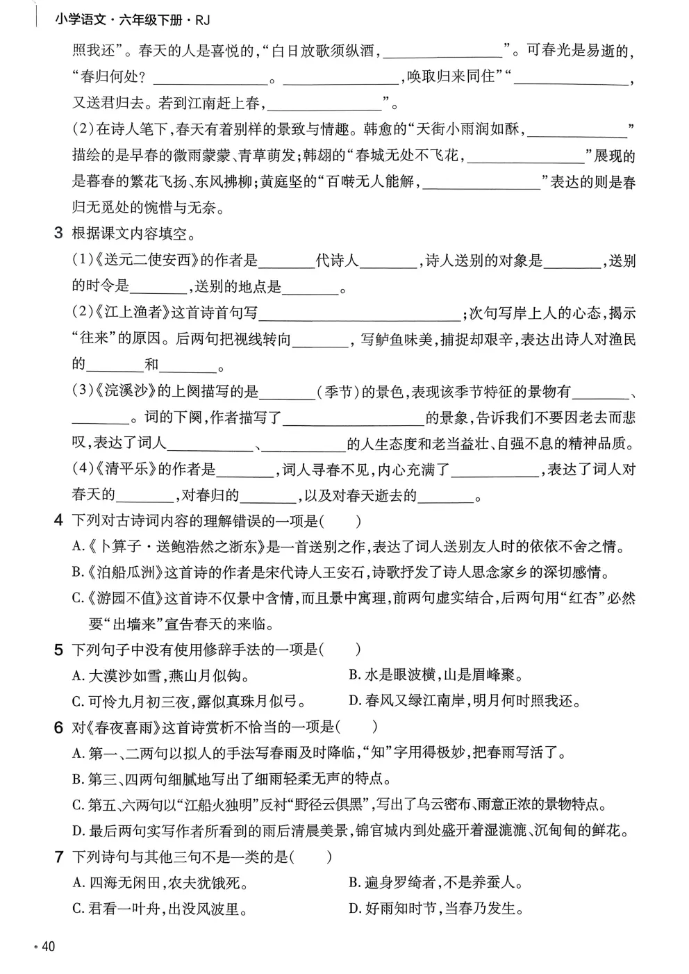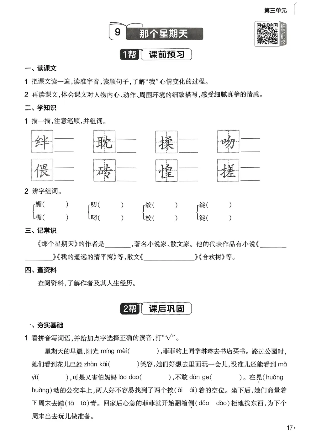 🌸今天给家长们分享的是26春人教部编版六年级下册语文《课本同步练习·一课一练》基础巩固(附答案)高清电子版可打印,整理了三年级下册语文同步课本基础知识一课一练。看拼音写词语,句式训练,阅读提升都是基础的知识点,家长们可以打印下来让孩子提前预习或者学完新课后让孩子进行练习,每天十分钟,巩固基础知识,成绩才能提高,需要的家长抓紧领取一份给孩子打印🖨️出来,让孩子练一练吧!