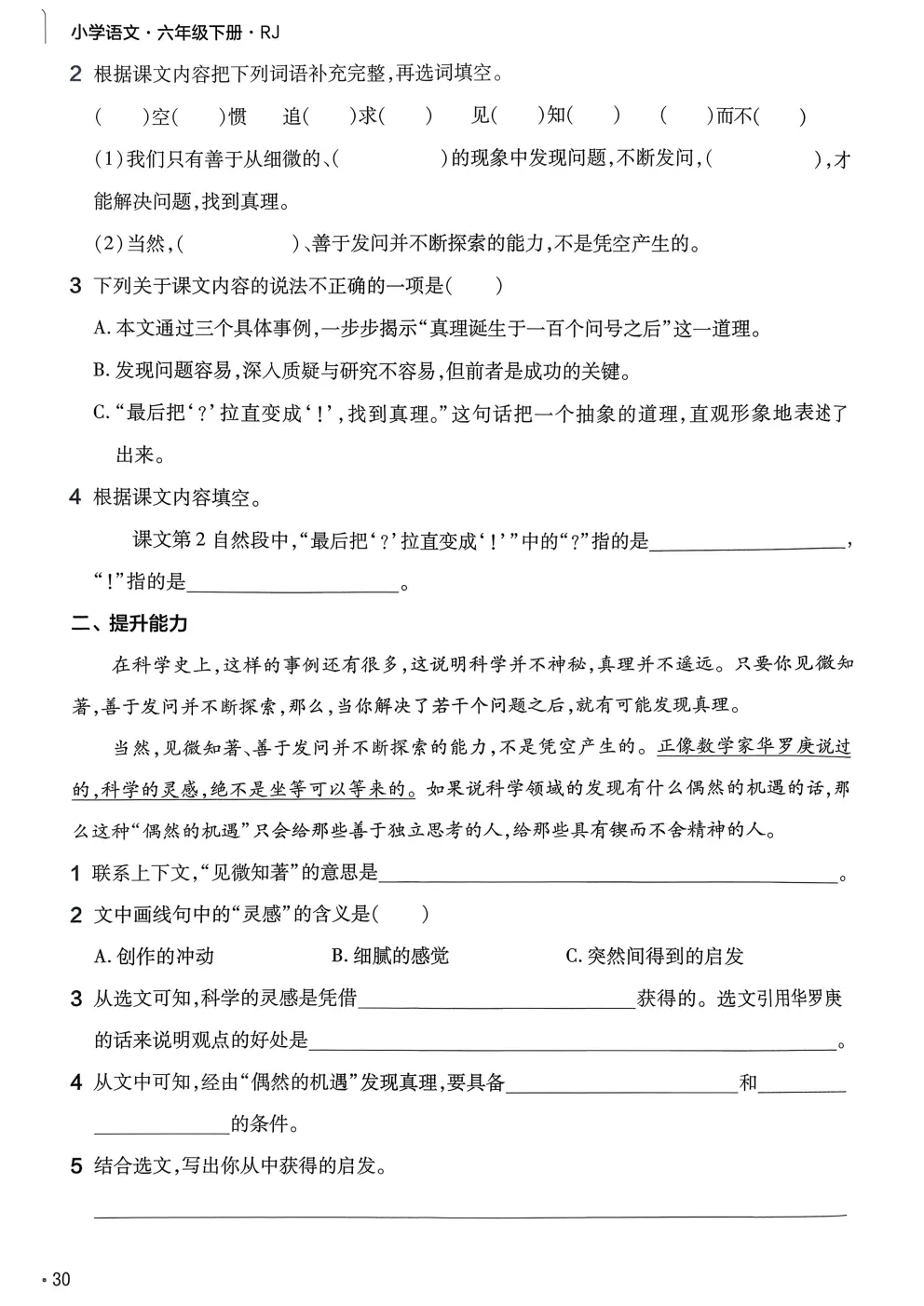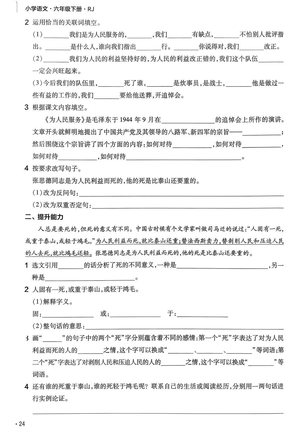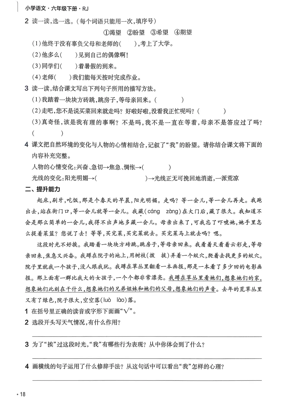 26春部编版语文六年级下册《课本同步练习一课一练》基础巩固(附答案)高清可打印