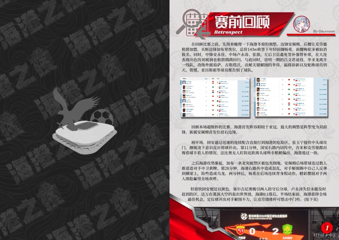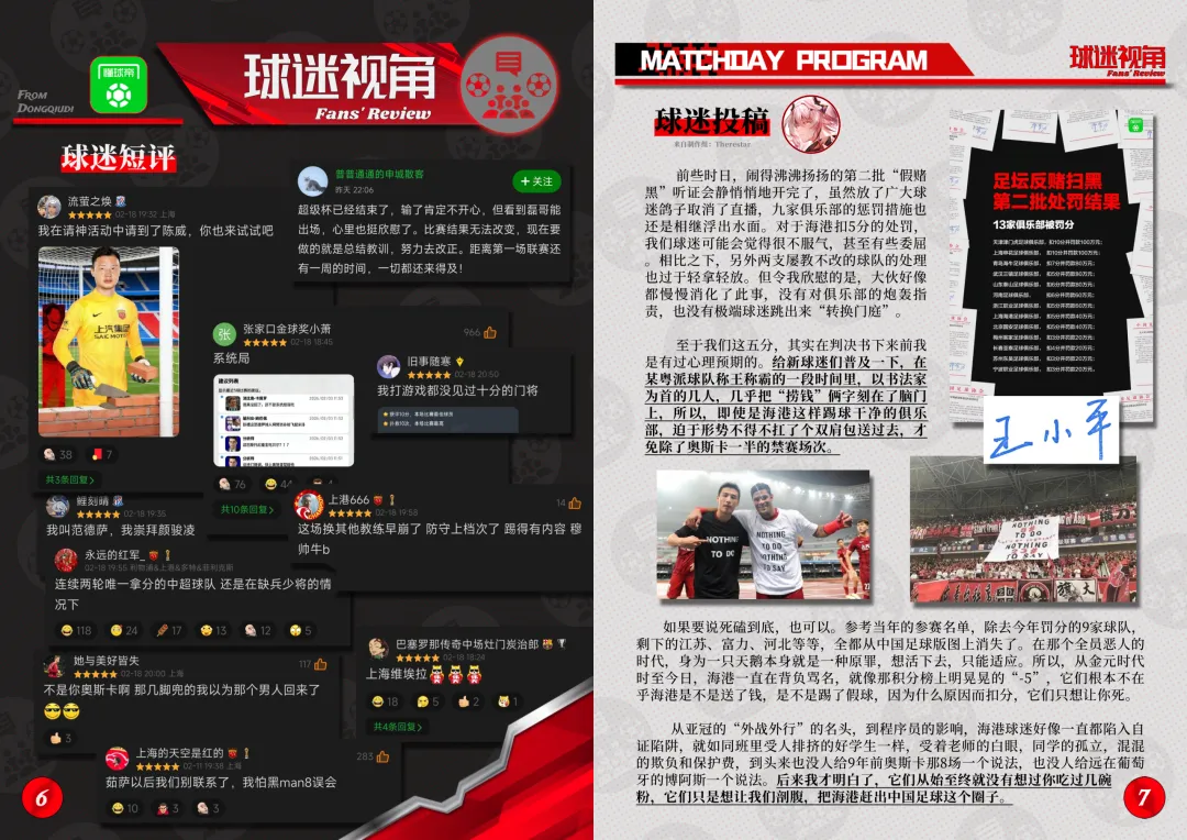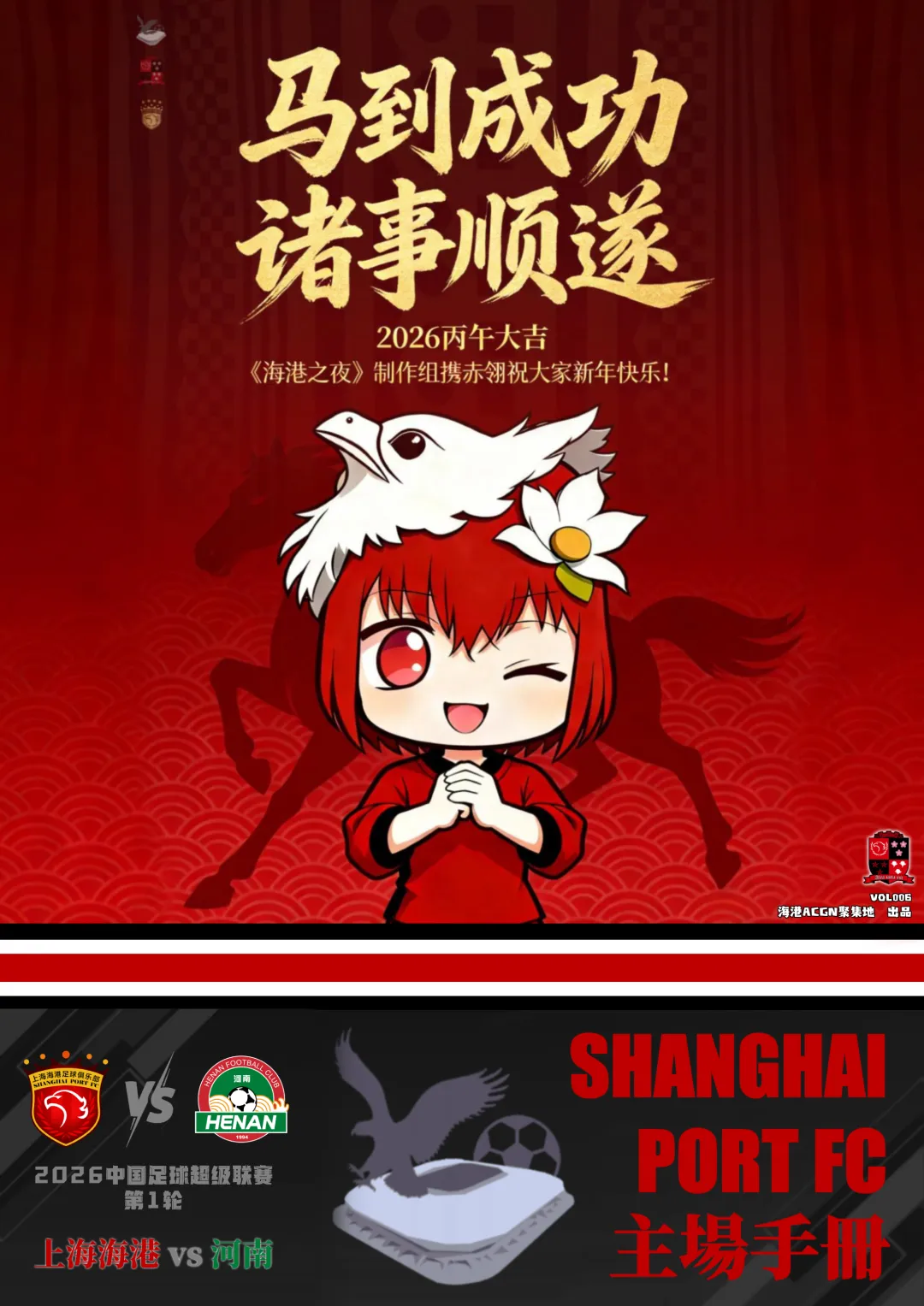 【赛刊 · 海港之夜VOL006电子版正式上线】 本期赛刊星火号为VOL006,纸质版发行于2026.3.7-17:30,对应主场场次为2026赛季中超第1轮:上海海港 vs 河南。 修改与勘误:由于一些疏忽,最终电子版有一些地方进行了修正:P4-河南队门将王国明的球衣号码应为18号。若造成不良的阅读体验,我们深表歉意。
