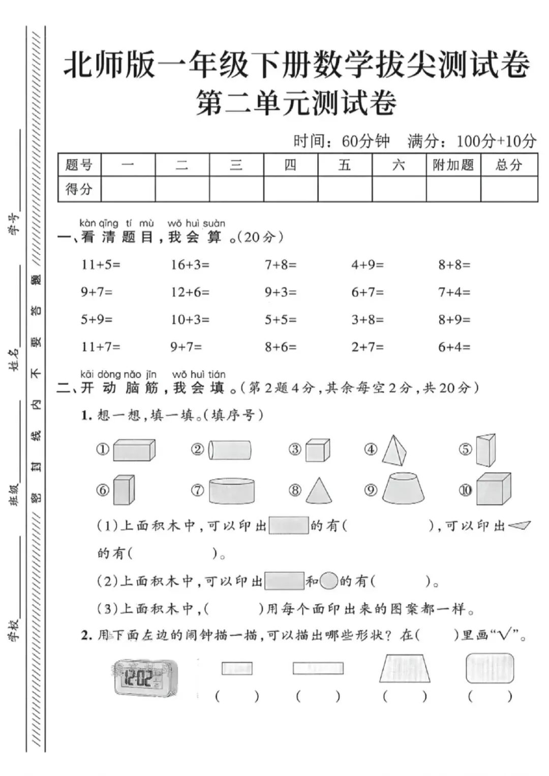 一年级下册数学进入20 以内加减法、数的认识、认识图形重点学习!这两套北师版同步单元测试卷,紧扣教材考点,融合非遗、科普、生活情境,兼顾口算、思维、动手操作,基础扎实、提升有力,附完整答案~电子版可打印~