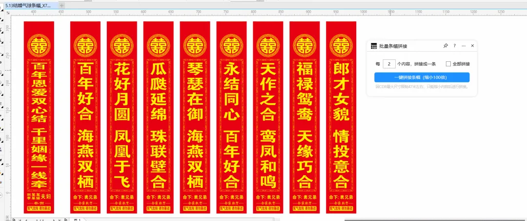 功能简介:该插件可实现将已经做好的条幅一键自动拼接、可指定拼接数量,按照一定的数量拼接,用于条幅PLT输出。