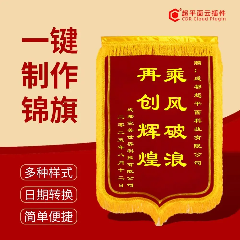 功能简介:一键制作锦旗插件可批量生成复合布及普通布的常见规格锦旗,操作简便快捷。