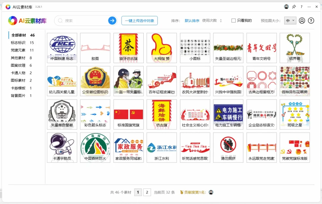 功能简介:该插件基于AI识别和打标和内容搜索能力,提供用户上传发布的位图/矢量素材、图标、版式设计等,整合素材资源,也可收藏管理自己的素材,提高平面设计排版的速度。