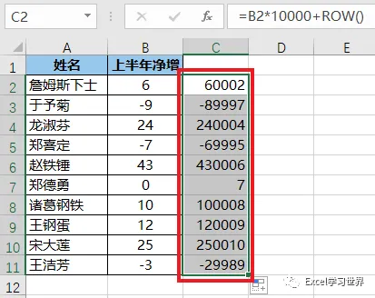 LARGE($C$2:$C$11,ROW(A1)):large 函数的作用就正好与 small 相反,因此结果就是降序排序;