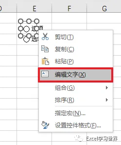 4. 选中上方的控件 –> 右键单击 –> 在弹出的菜单中选择“编辑文字”