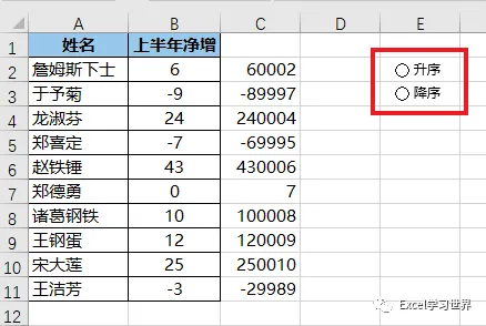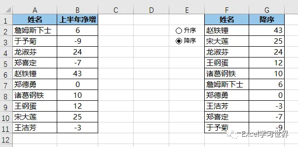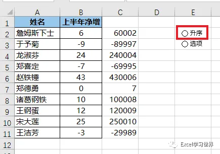 用 Excel 选项按钮动态控制数据表的升降序排列,原来根本不难