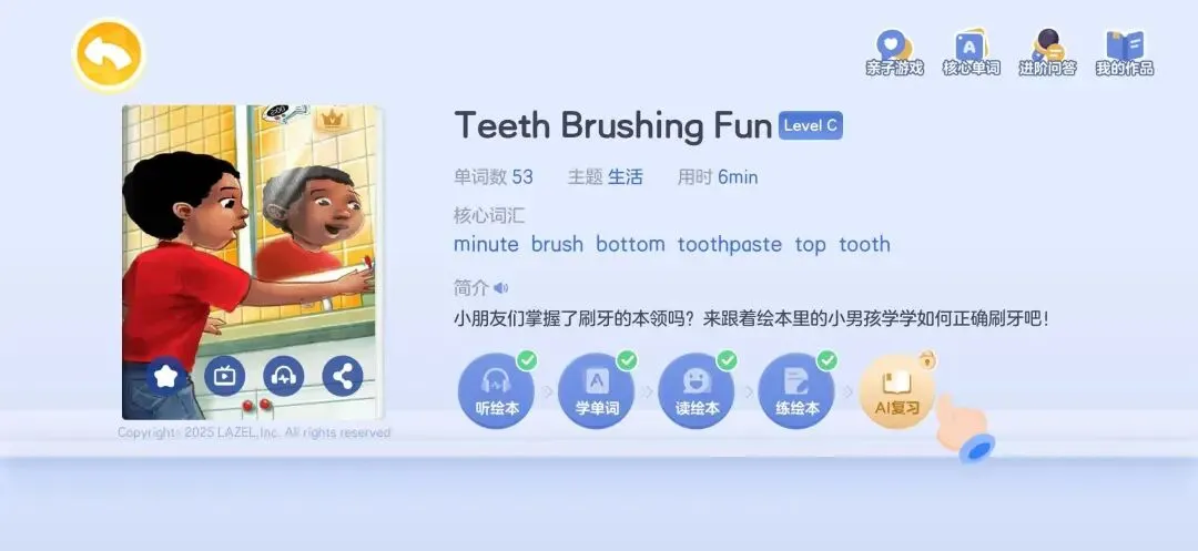 还自带家庭互动游戏,既能和机器对战巩固知识,也能和家人一起互动,让学英语变成有趣的亲子时光(老实说,有些单词我这辈子都是第一次见~)。