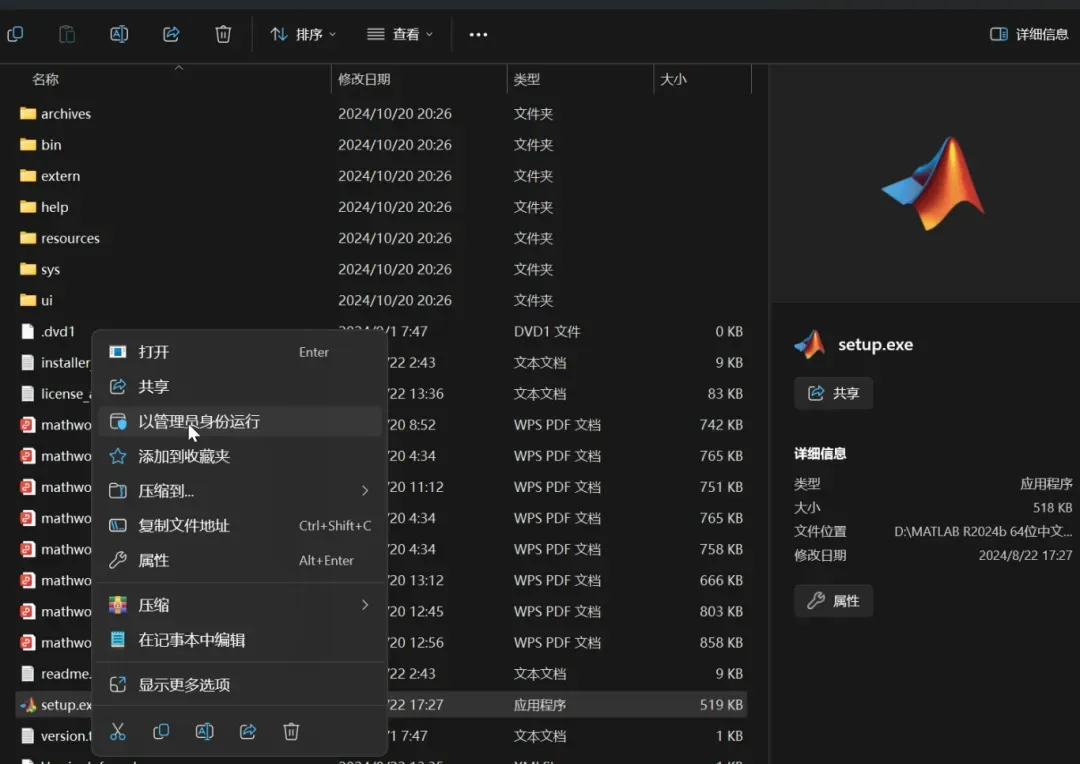 4.鼠标右击【setup】选择【以管理员身份运行】。