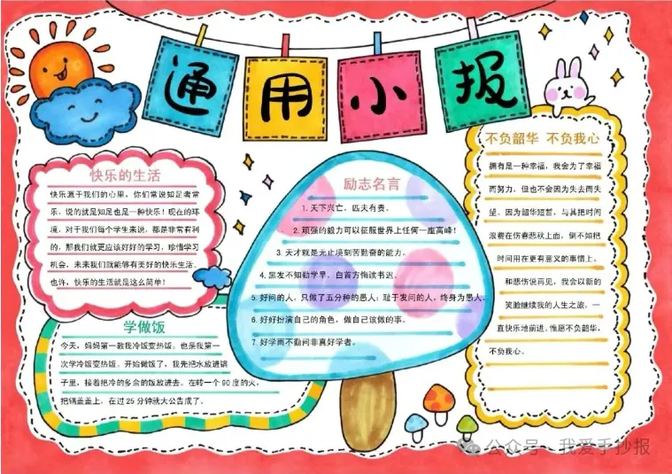 手写或印刷字体:手抄报的整体风格可以选择手写体,给人一种亲切感;也可以使用印刷体来增加整洁感。通过大小字体的配合,能够让手抄报看起来更有节奏感。