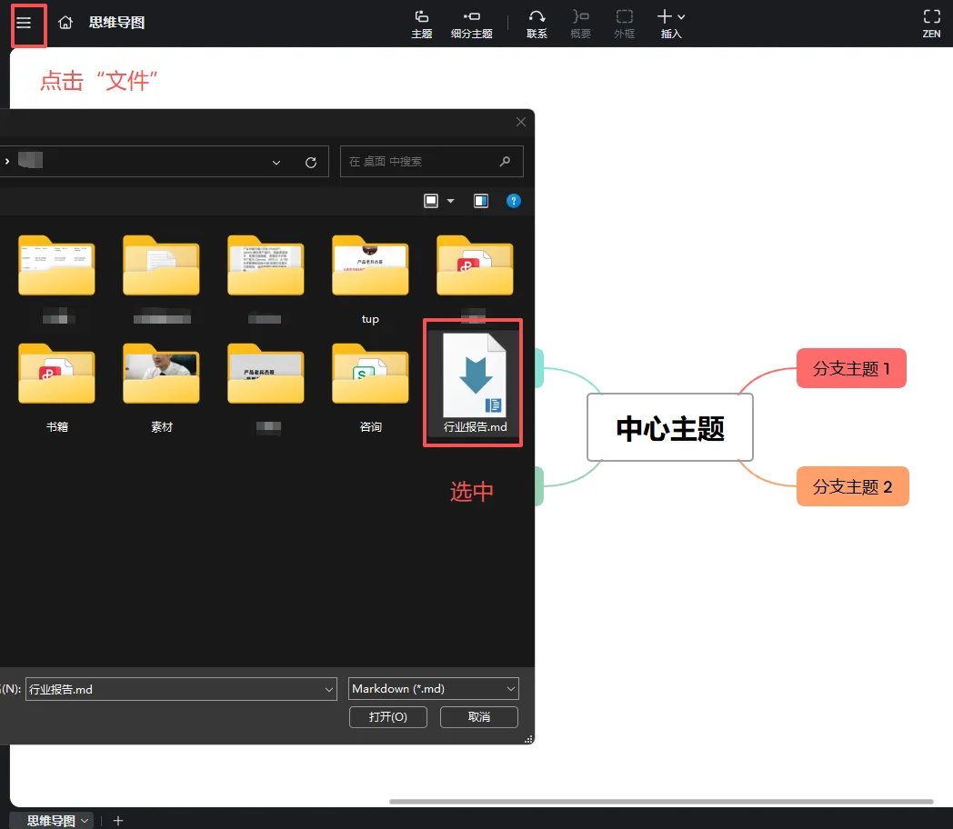 打开xmind(其它脑图工具也行),点击“新建-文件-导入-markdown文件”,这样就把上面的md文件 导入成了脑图,可以在脑图中阅读和编辑了。