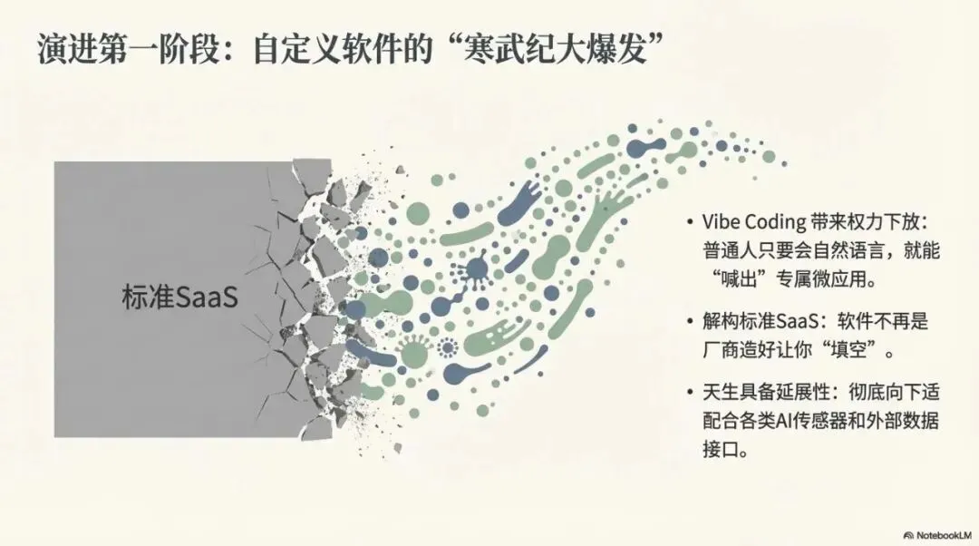 未来的软件不再是厂商造好让你去“填空”,而是拥有极强的延展性,天生适配各类AI传感器和数据接口。标准化的SaaS将被无数个性化的“微应用”迅速瓦解。