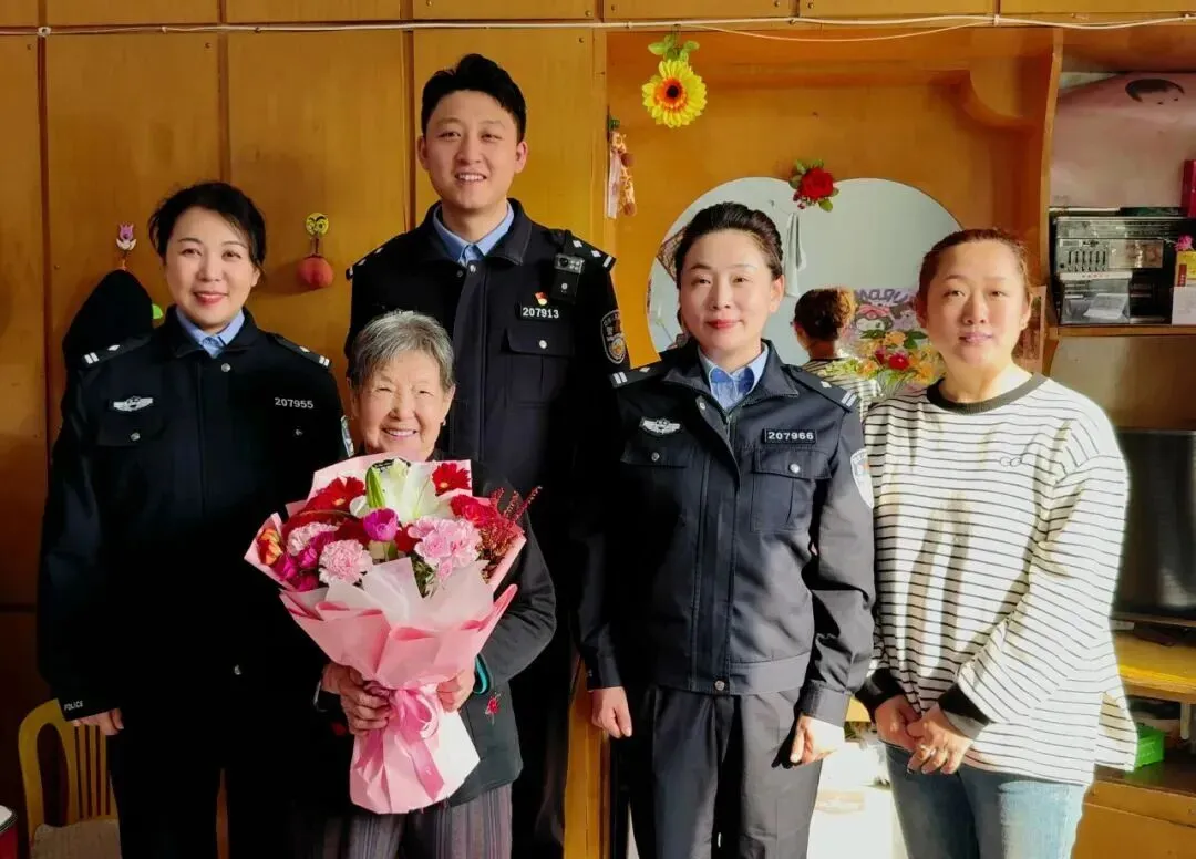在水岸社区,女警们与社区民警、社区干部一同来到近期广受关注的“反诈达人”林大娘家。前不久,一则《民警刚换新片区,大娘表现出超强的防诈意识》的视频在网络热传,林大娘凭借高度的警惕性成为老年群体中的“防诈典范”。女警们为老人送上鲜花与节日祝福,感谢她为反诈工作树立榜样,并希望她继续发挥“身边人”优势,协助公安机关与社区开展反诈宣传,引导更多群众守好“钱袋子”,筑牢全民防骗屏障。