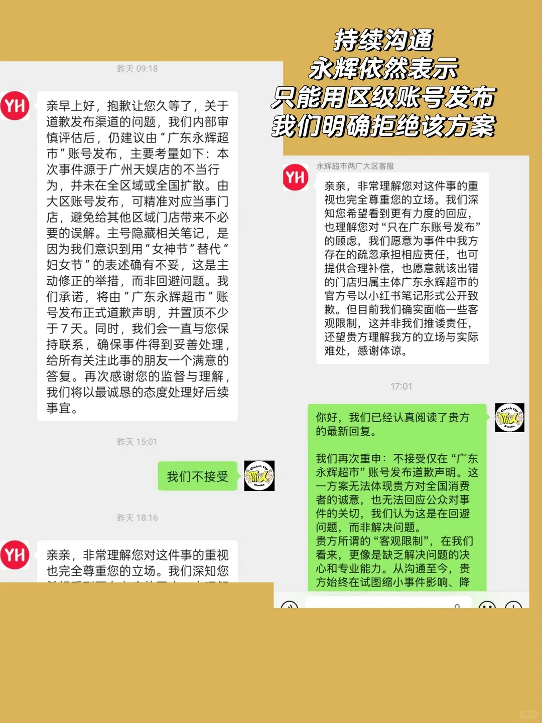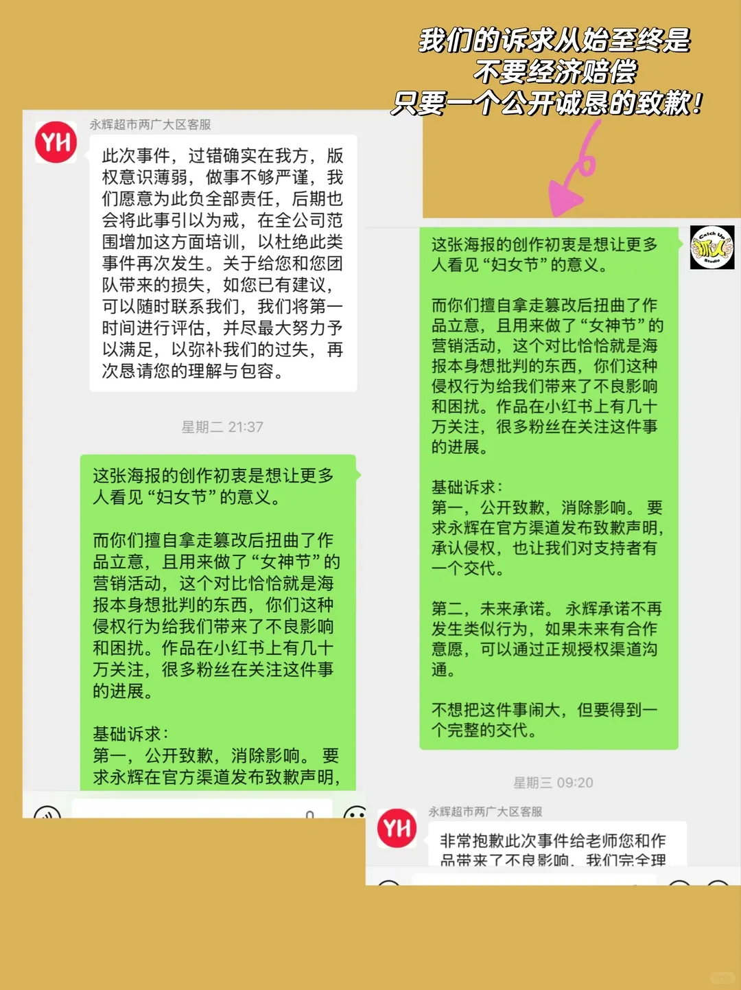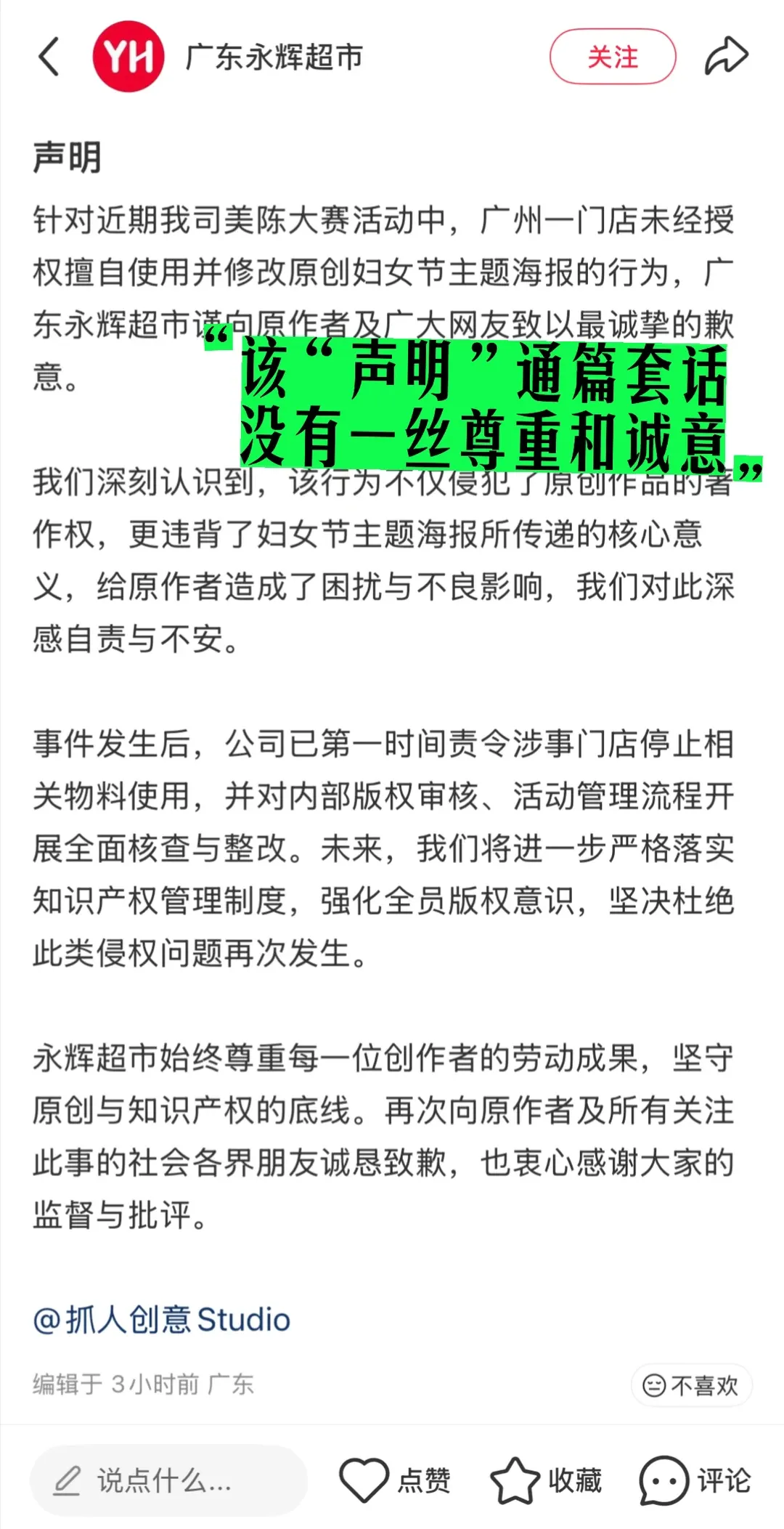 对于永辉的侵权事件,抓人创意Studio不想再做更多的缠斗和无意义的争论。