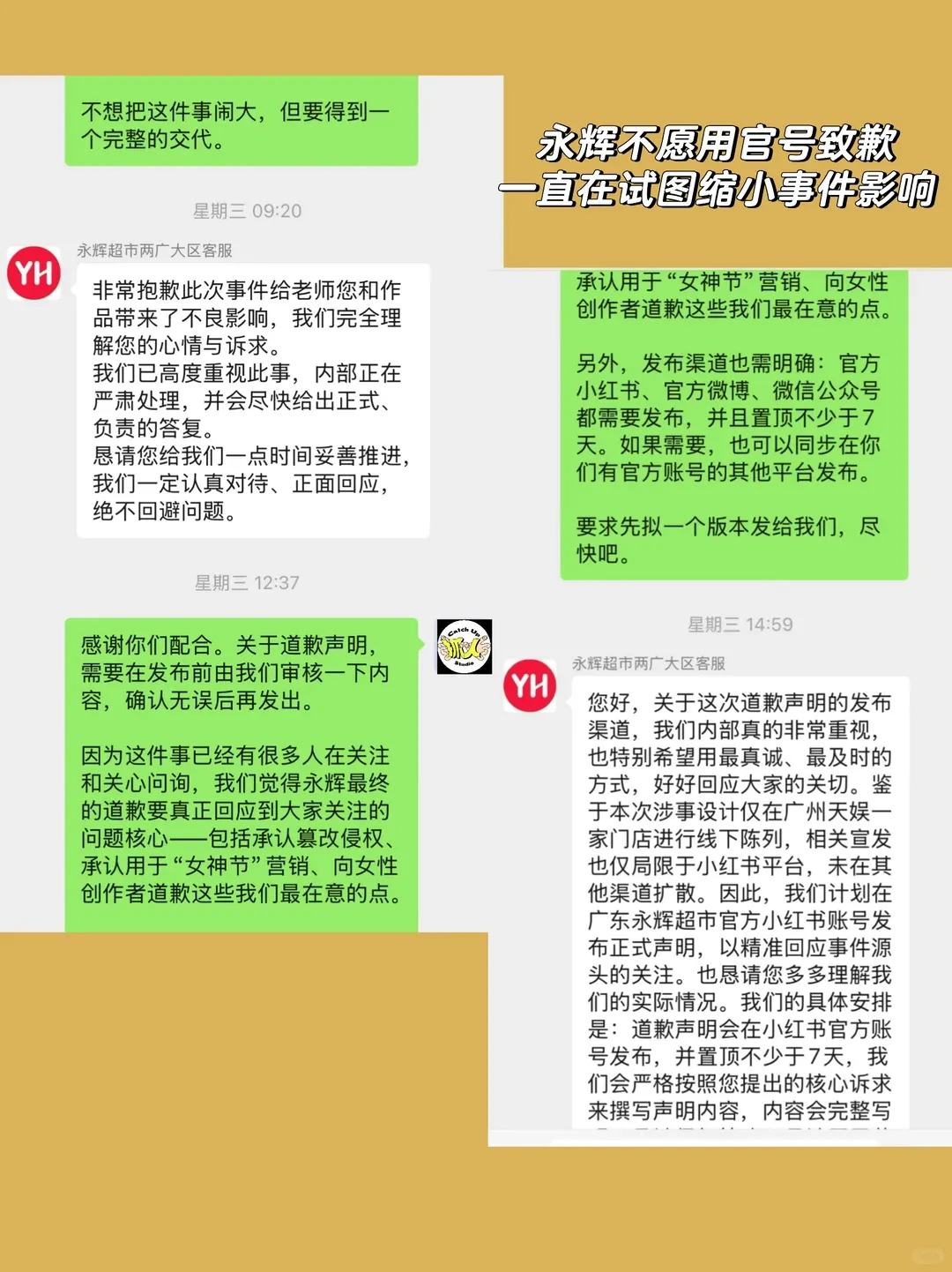 主号道歉,让关注此事的人看见承认篡改,承认用于“女神节”营销发布前由我们审核。
