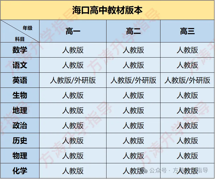 海口高中除了英语这一科,其他科目统一使用人教版。