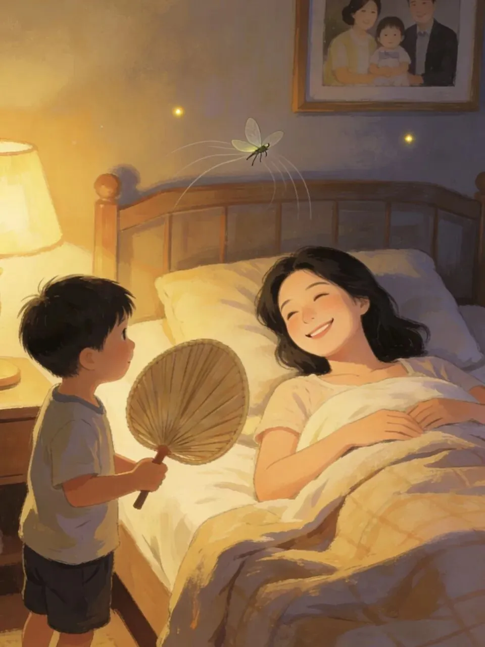 就在昨晚,我抱怨了一句蚊子咬我,一声奶声奶气的声音却在我耳旁响起:“妈妈,我来保护你!”