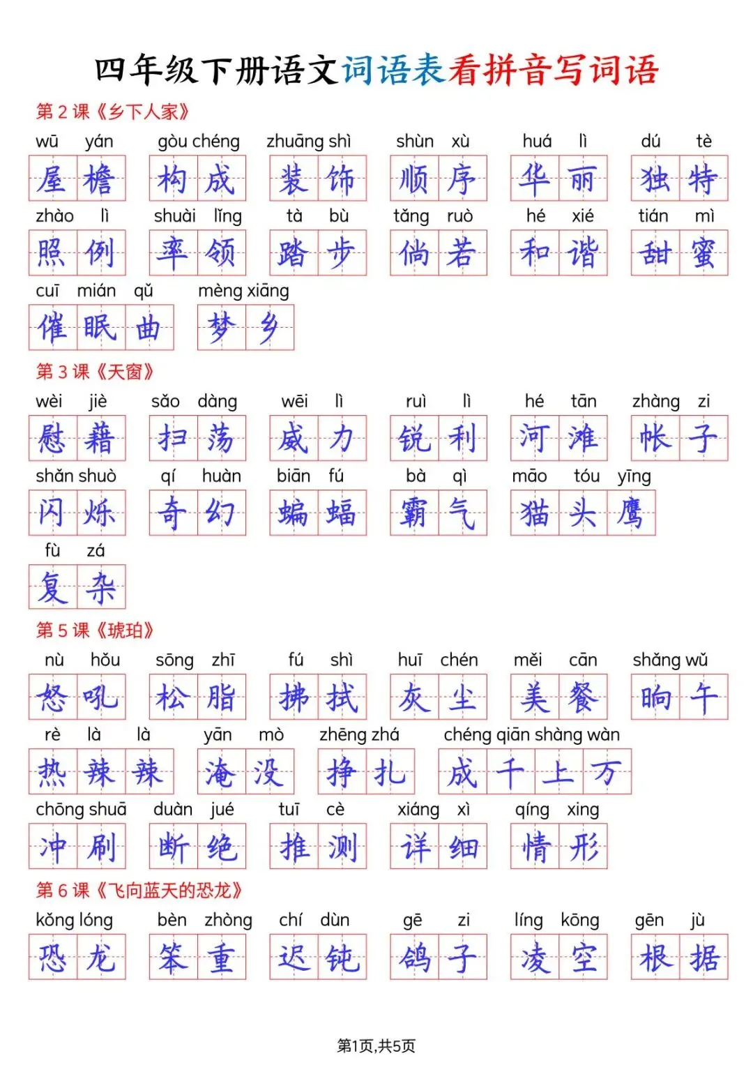 26春四年级下册语文词语表看拼音写词语(电子版,可打印) 26春四年级下册语文词语表看拼音写词语,共10页,电子版,有答案,支持下载打印。包含每课必考词语,课后及时巩固,并夯实语文基础,马上就要开学了,赶紧领取给孩子准备吧! 篇幅有限,领取经典完整版: 第①步:点击右下角的“在看”和“赞” 第②步:关注公众号,公众号对话框回复:179
