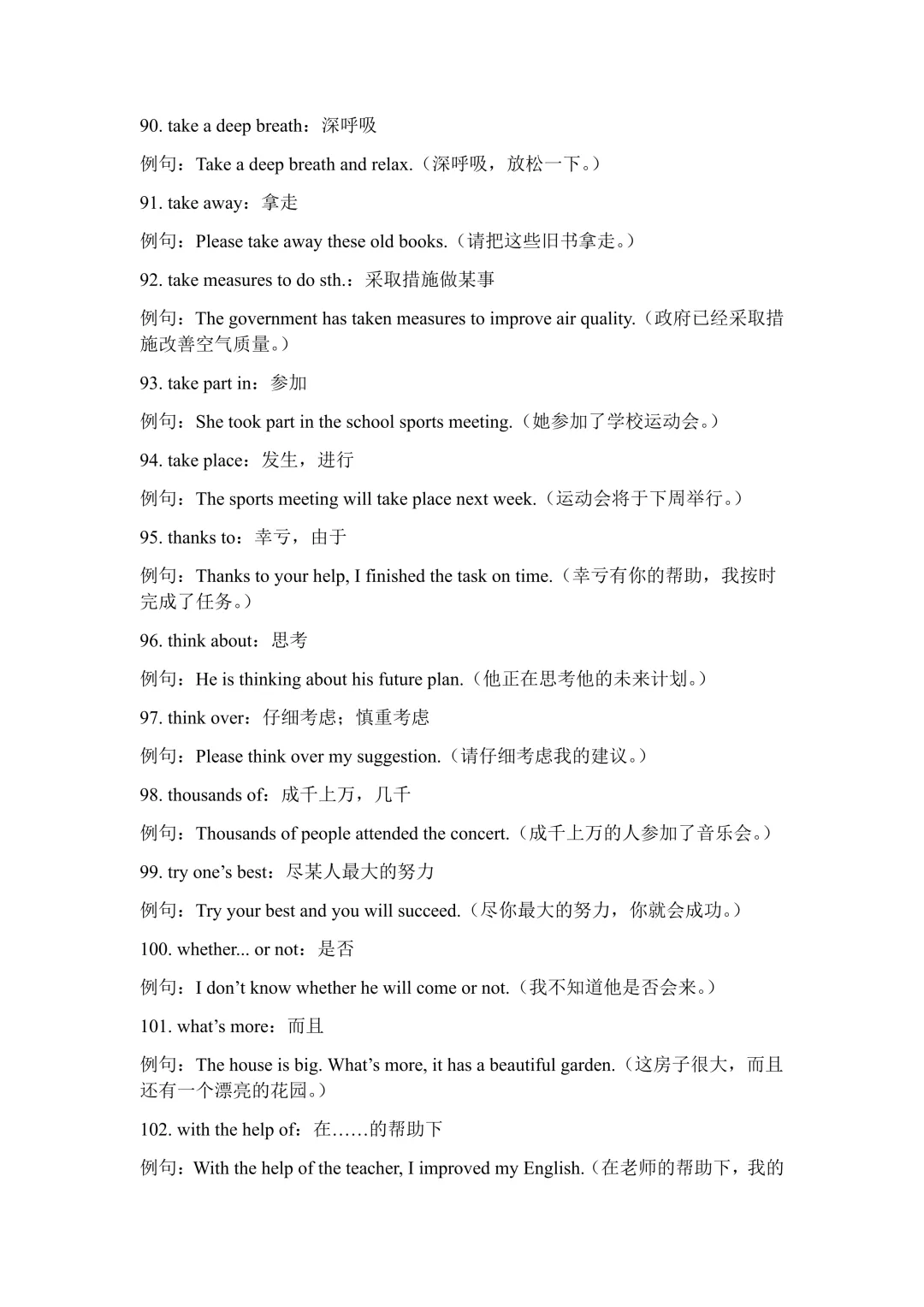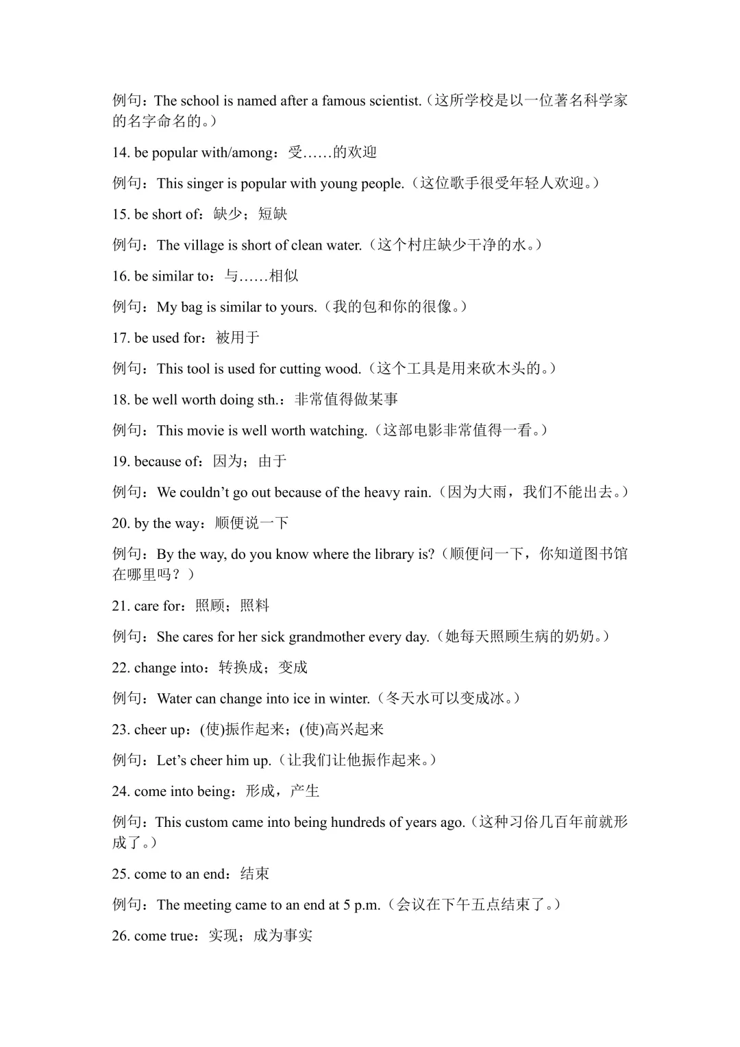 【可打印】2026年中考英语一轮复习必背短语(含:释义、用法和例句)