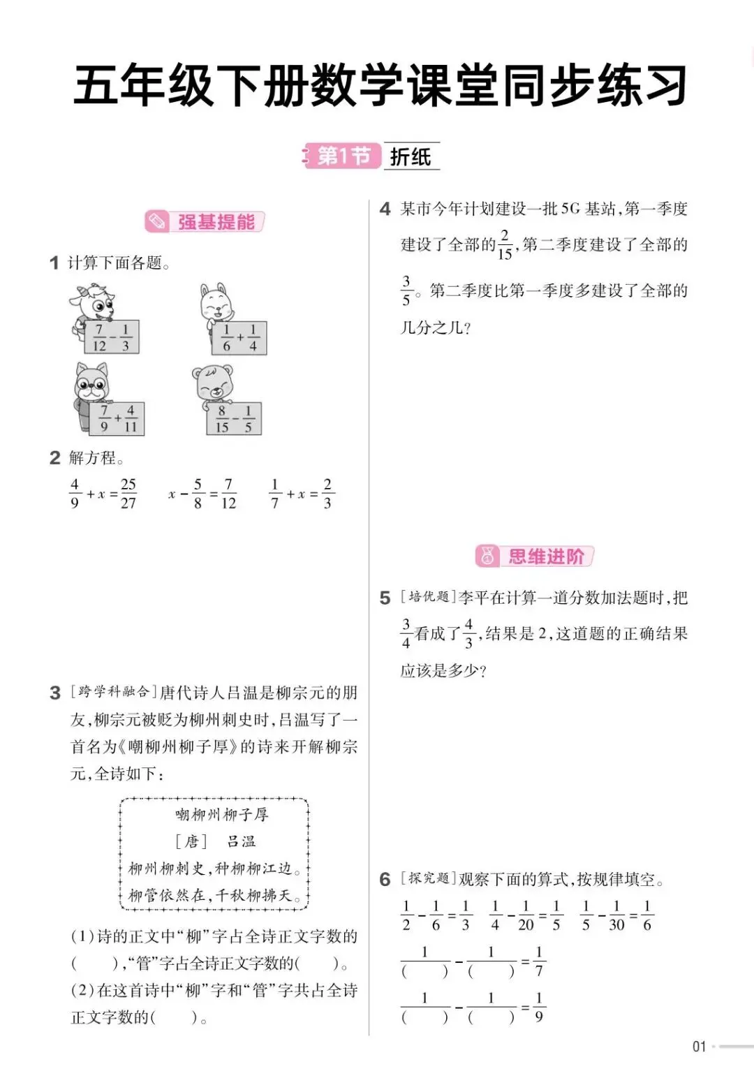 今日分享五年级下册数学北师版《课堂同步练习》,需要的家长抓紧打印出来,让孩子在每天练一练吧。