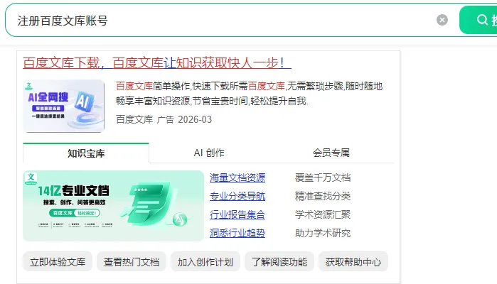 打开百度,搜“百度文库”,点进去之后,注册个账号。