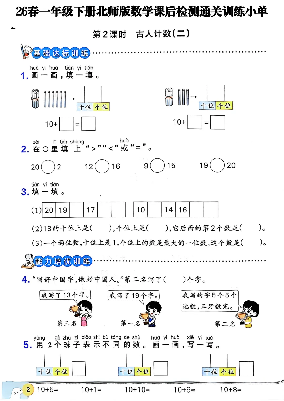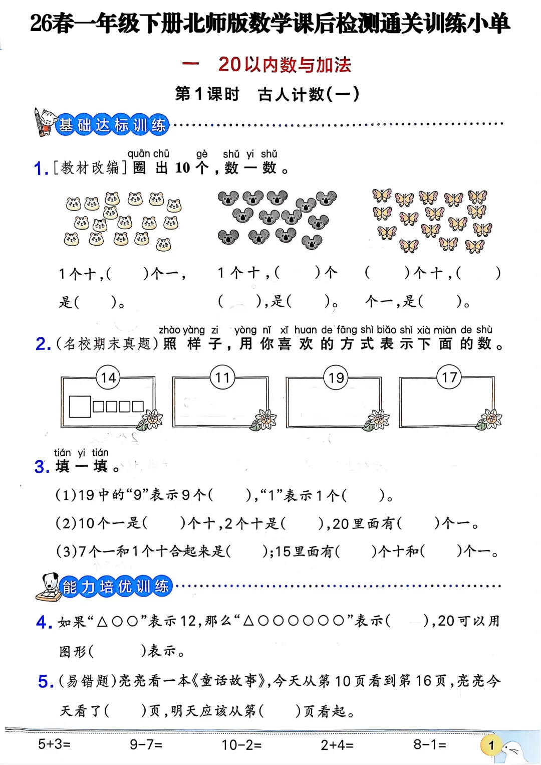 #一年级数学#26 春资料 #北师版数学#北师大版数学#同步课本#课后检测#通关训练#小单#含答案#小学数学#可打印资料