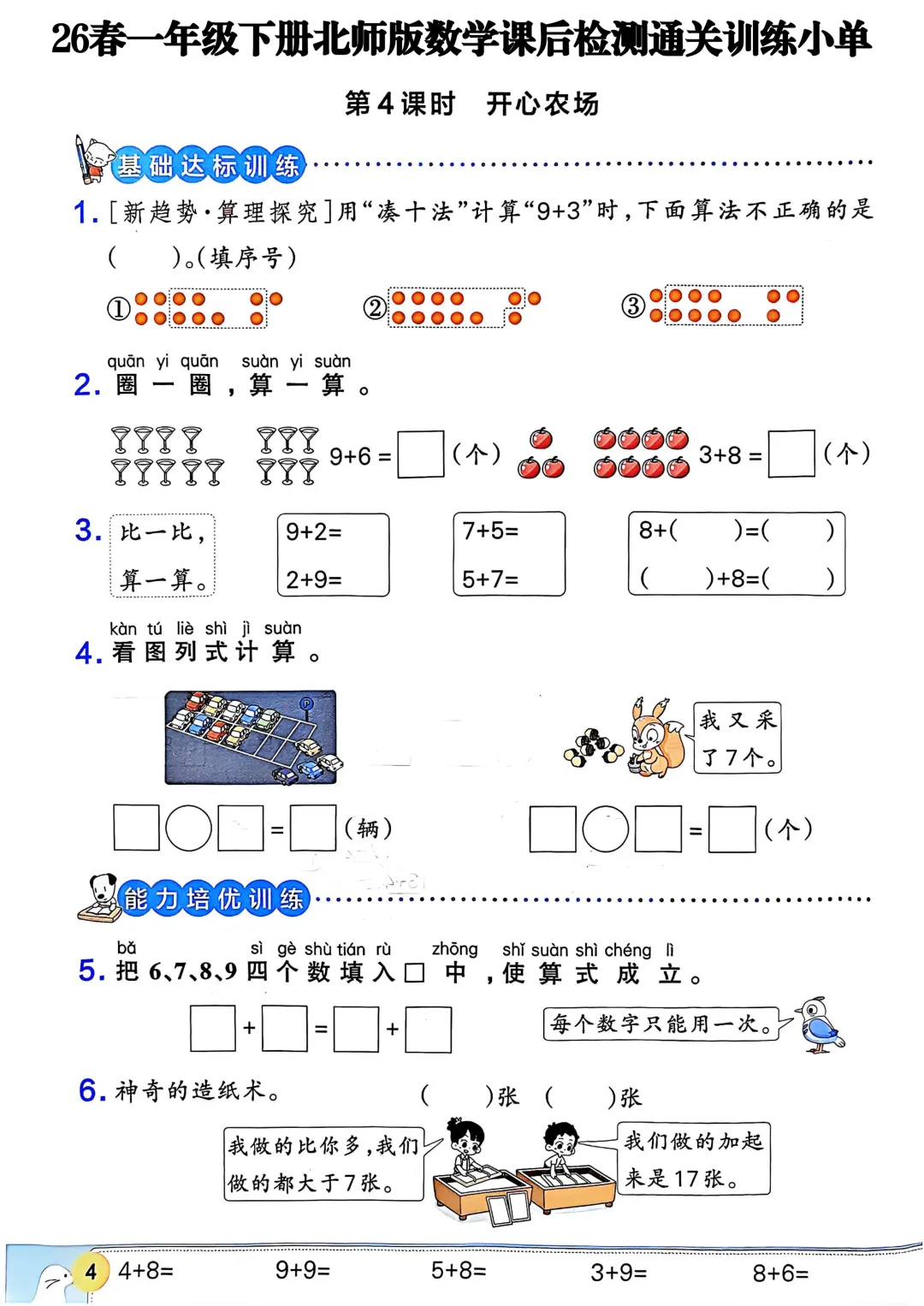 一年级家长快看👀26 春一年级北师版数学下册《同步课本课后检测通关训练小单含答案》来啦✅