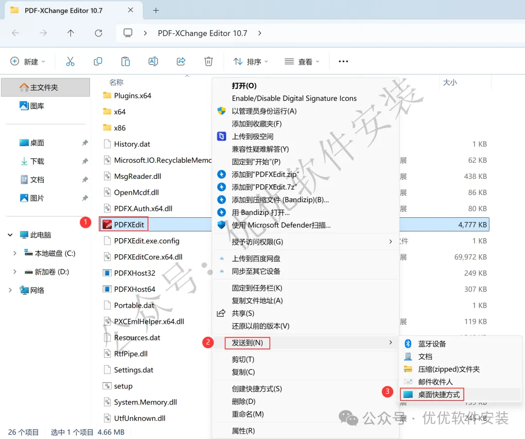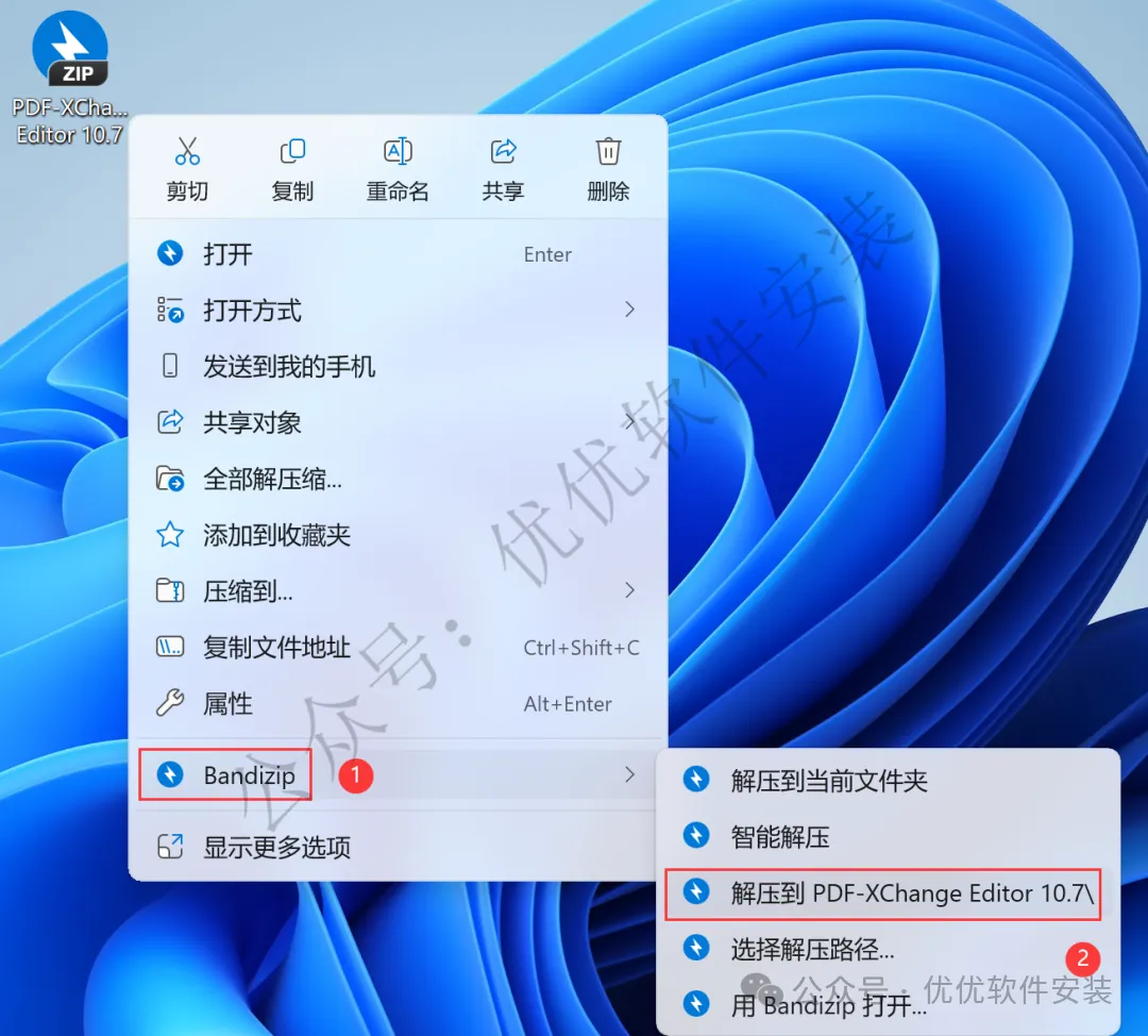1、下载PDF-XChange Editor 10.7软件安装包到电脑上,右键选择【解压到PDF-XChange Editor 10.7\】