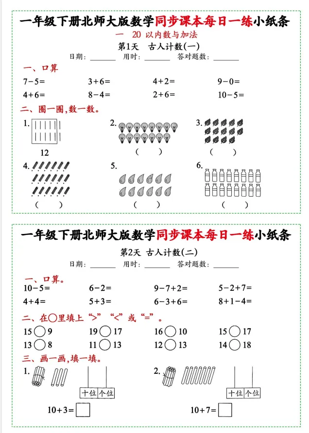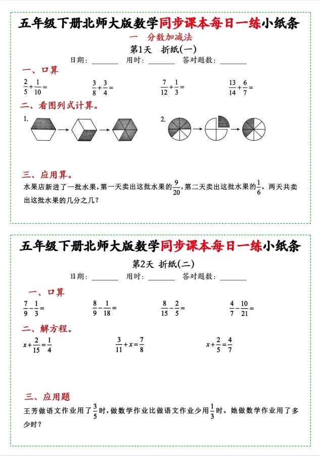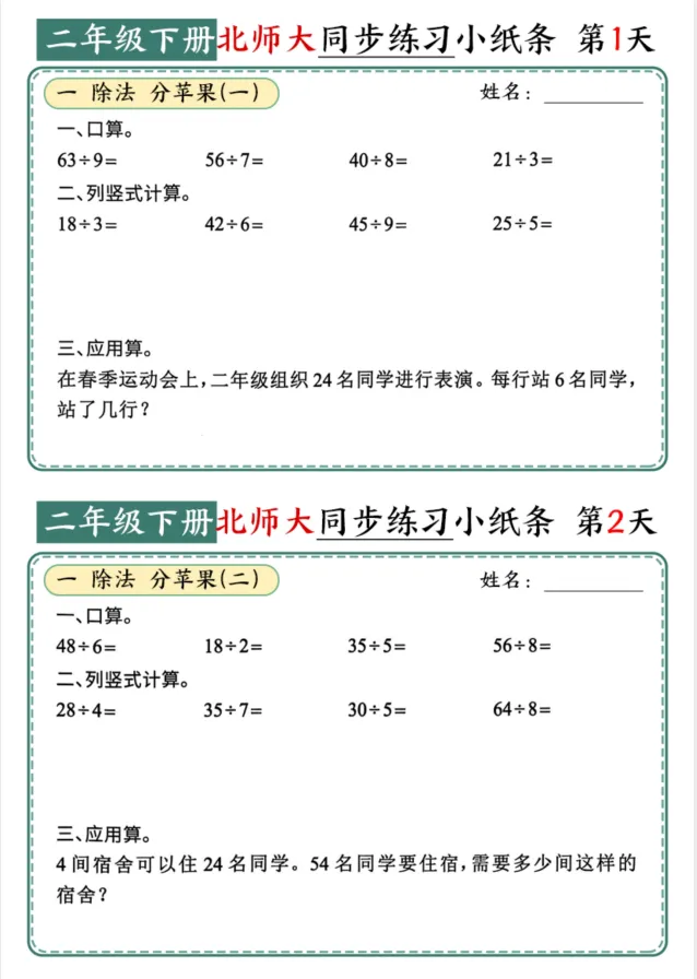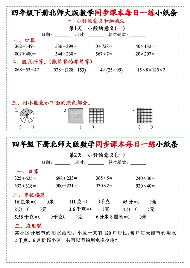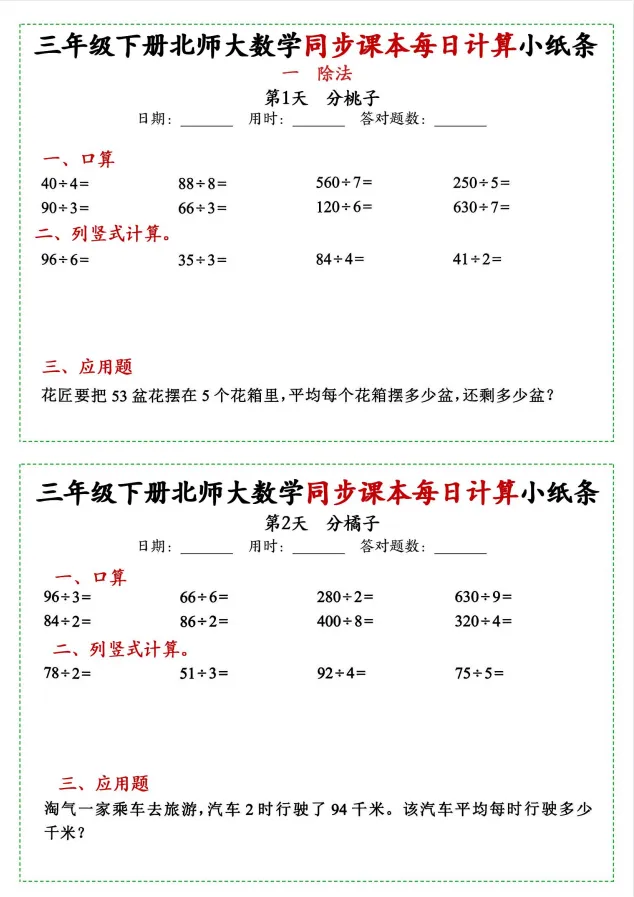 数学下册1-6年级每日一练小纸条,可下载,可打印!