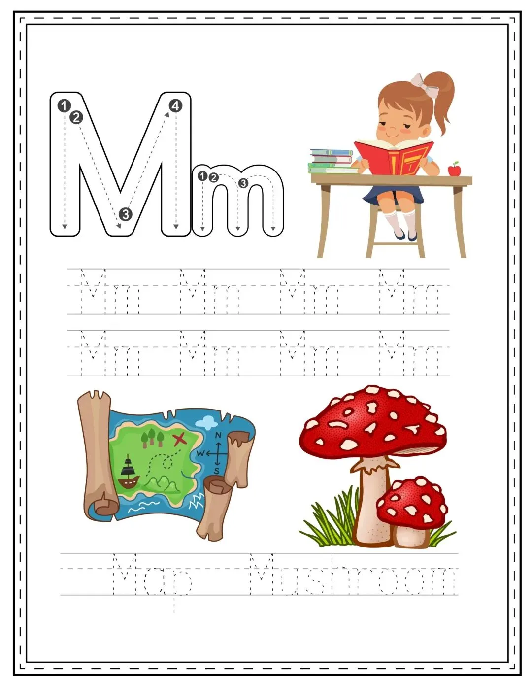 卡通可爱26个字母练习纸可打印,共26页