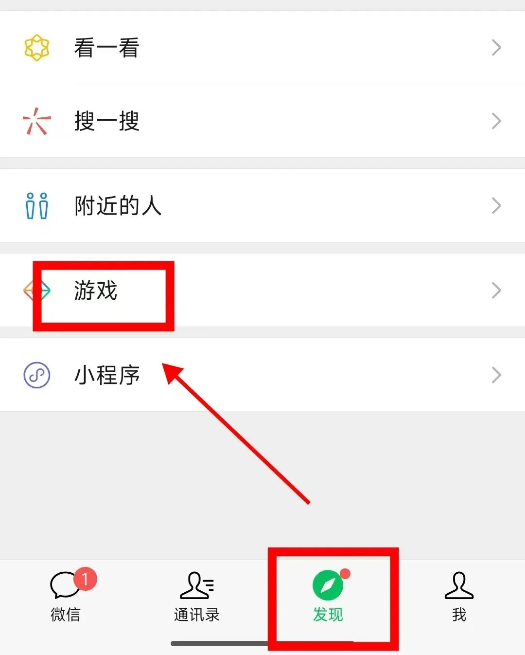 第八个:微信,这个也需要从微信里下载游戏才能领取,打开微信,下面有个“发现”,然后点游戏。进去之后右边有个放大镜,搜索热血传奇就行了。