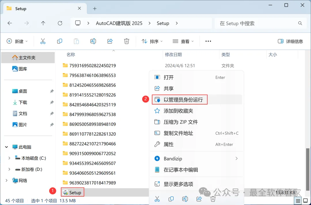 4、找到【Setup】应用程序,右键选择【以管理员身份运行】它