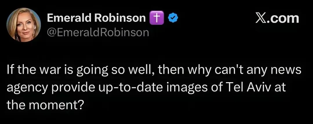 ️如果战争进展如此顺利,为什么目前没有任何机构能提供特拉维夫的最新录像?