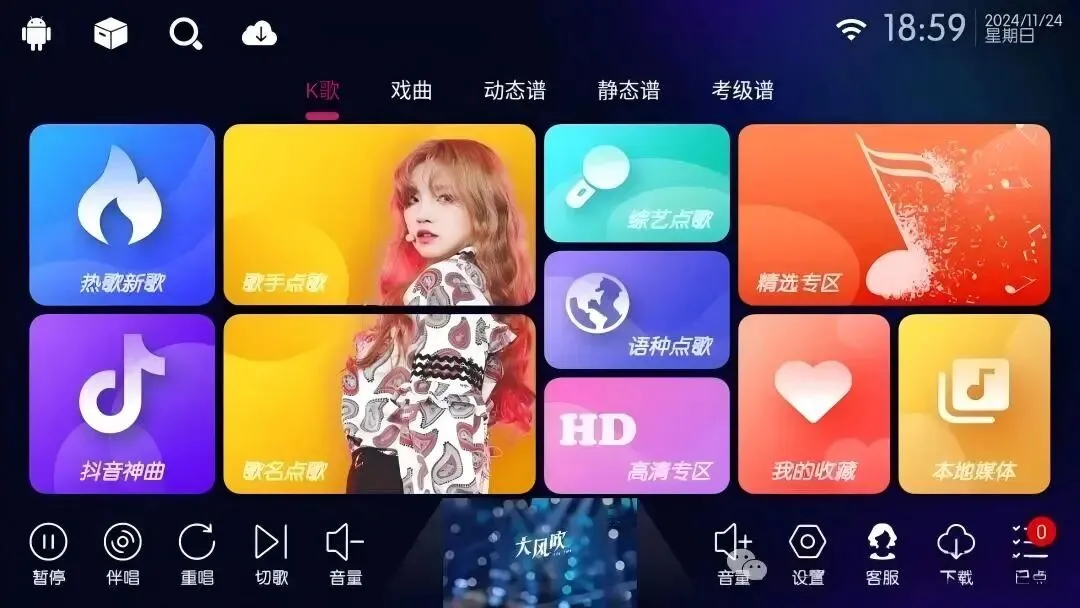 想在家K歌?这款UI绝美のK歌软件必须冲!遥控操作特顺手,歌曲库大到离谱——流行、经典、民谣、摇滚全涵盖,还能按歌手、语种、综艺点歌~