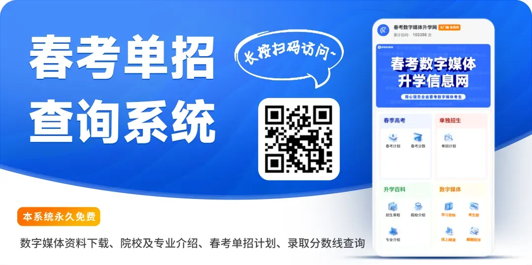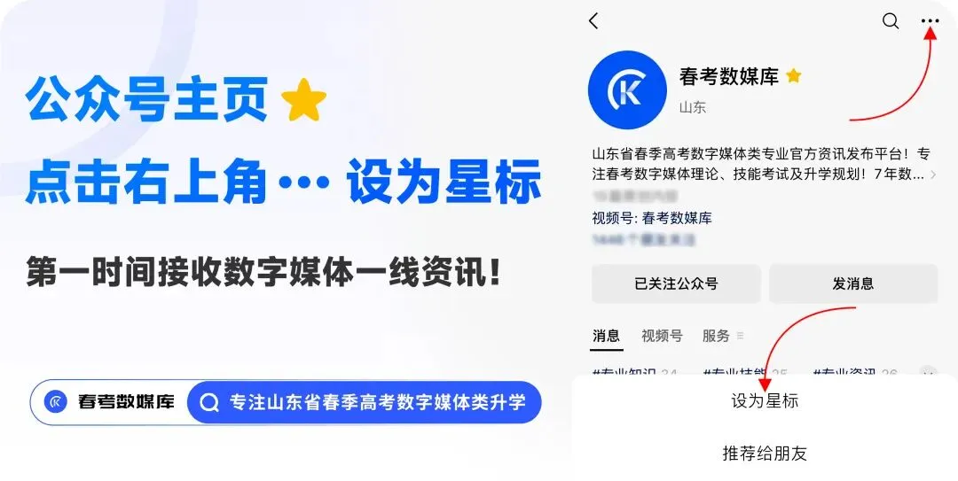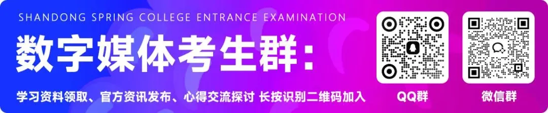 关于提前1天查看考场位置和考试入场的说明 ▲ 点击关注 春考数媒库 跟紧数媒库 上岸不迷路 理论、技能培训辅导,网课,理论在线刷题,技能精品题库,资料领取,考生交流群,春考单招政策,数字媒体资讯在线答疑,1对1志愿规划等各类问题咨询,请添加官方微信号:SDCKSZMT(山东春考数字媒体首拼)。 【重磅】春考数字媒体技能练习平台上线! ▌推荐关注公众号 ▌数字媒体独家教辅资料 ▌数字媒体独家技能资源 ▌春考/单招/技能/线下面授/线上网课/辅导培训咨询