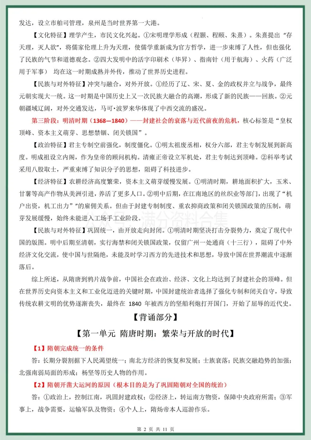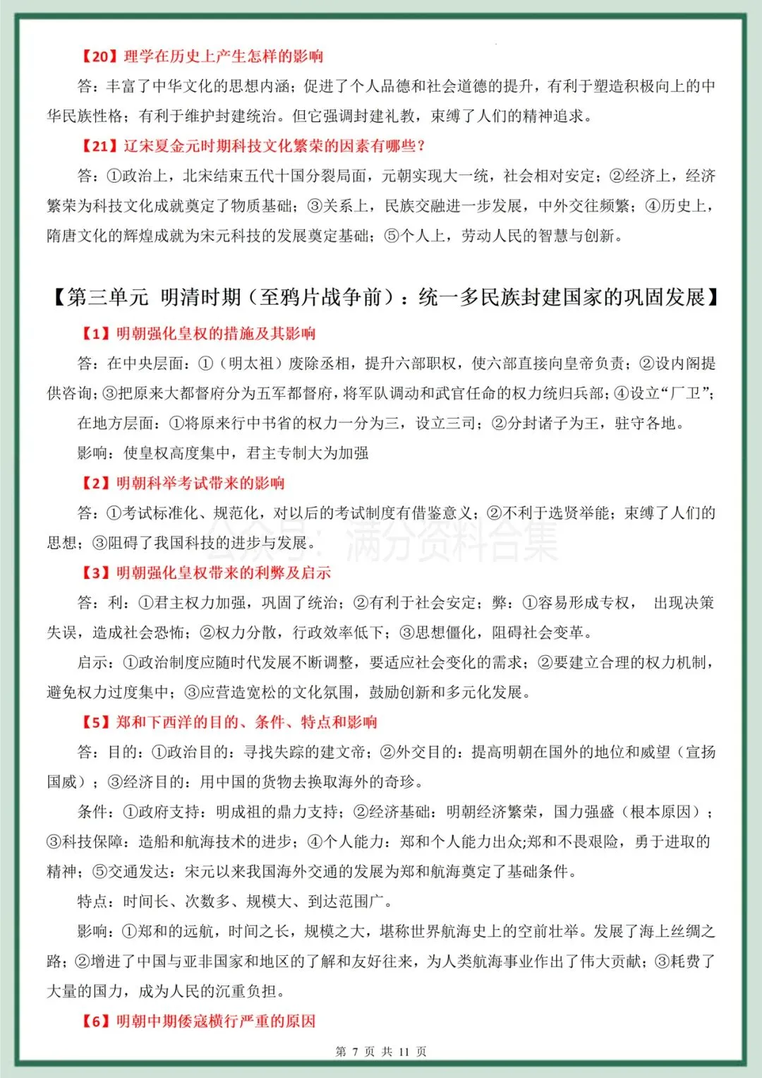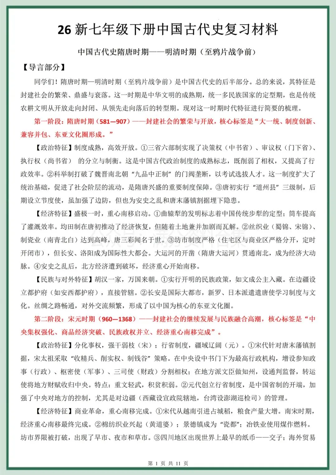 七2026年春期最新版七年级下册历史(中国古代史复习材料背诵)提分必备!完整电子版可打印!