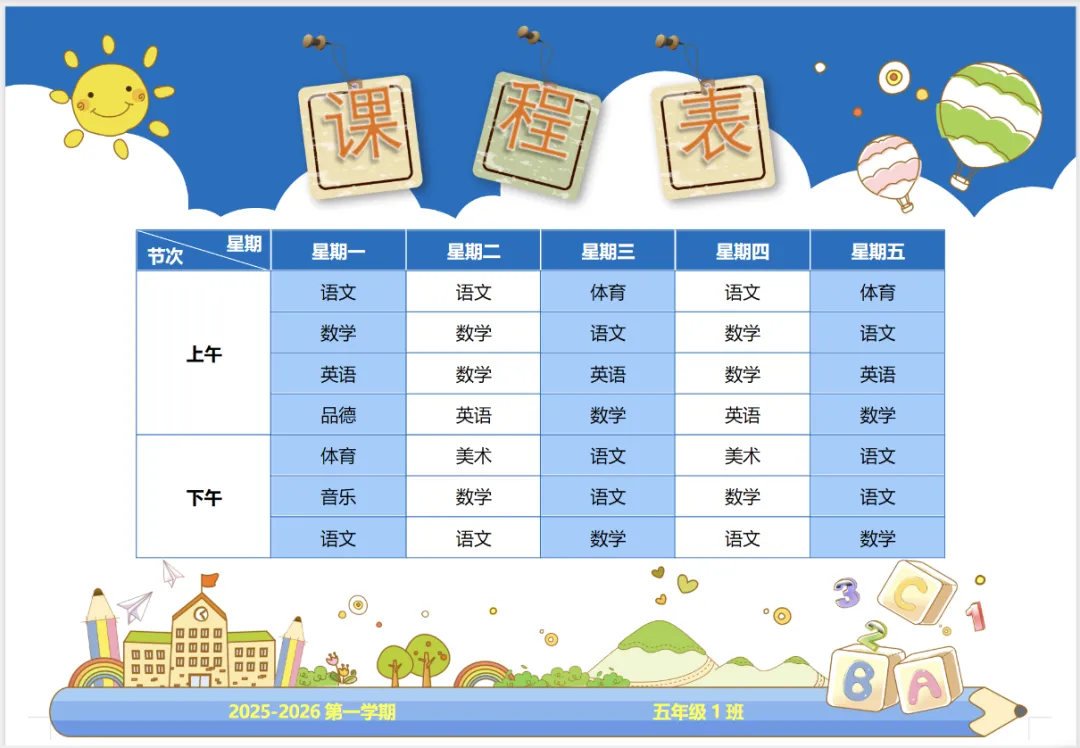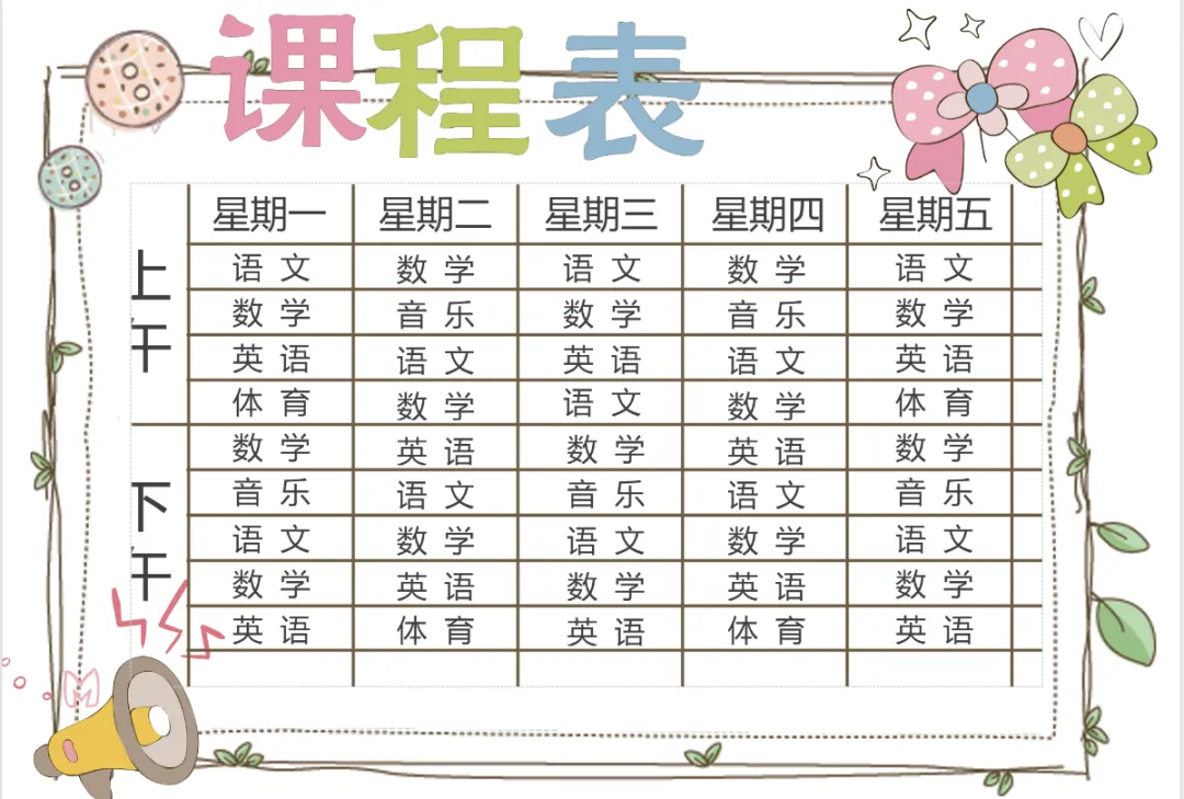 开学季可爱课程表模板(电子版可编辑可打印)【免费保存下载】
