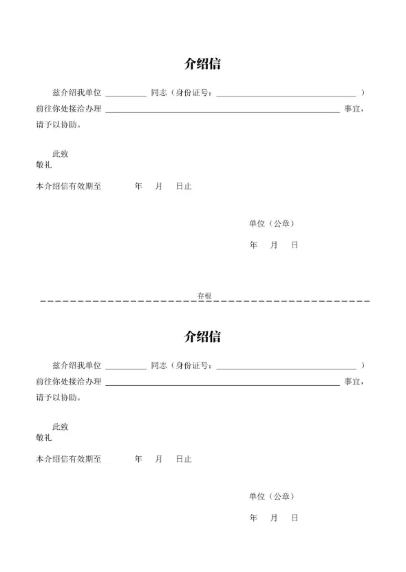 今天分享的是介绍信模板合集
